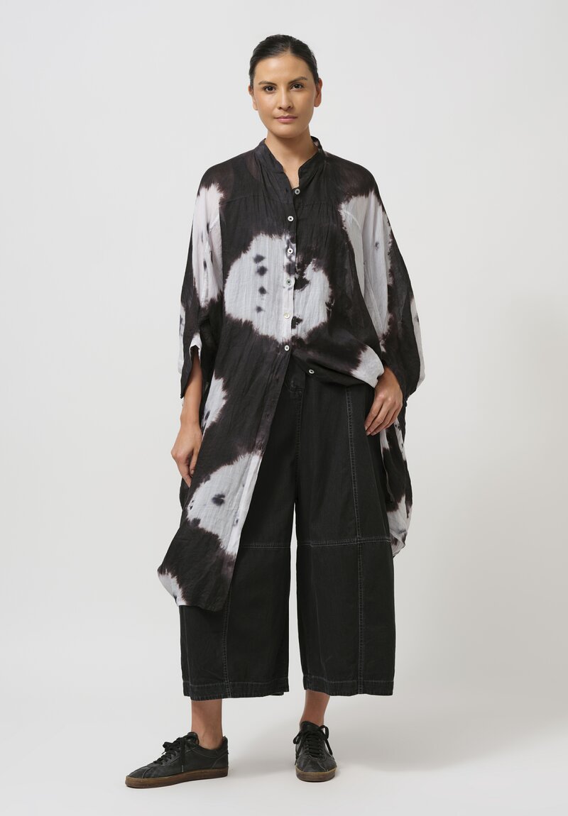 Gilda Midani Pattern-Dyed Linen Square Tunic in White Stone Black