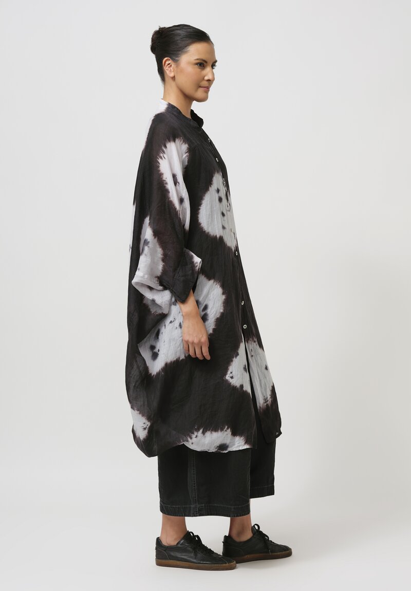 Pattern-Dyed Linen Square Tunic in White Stone Black