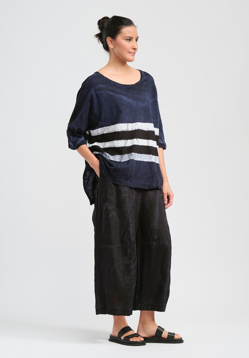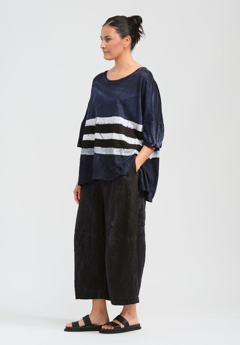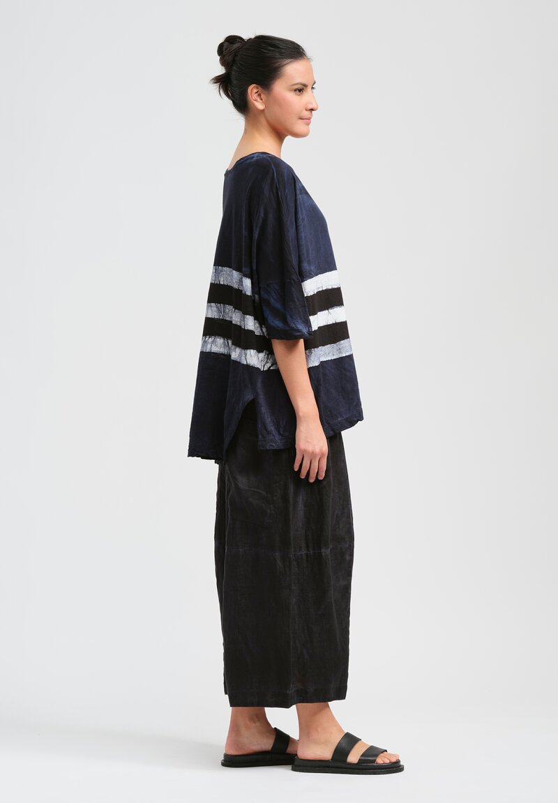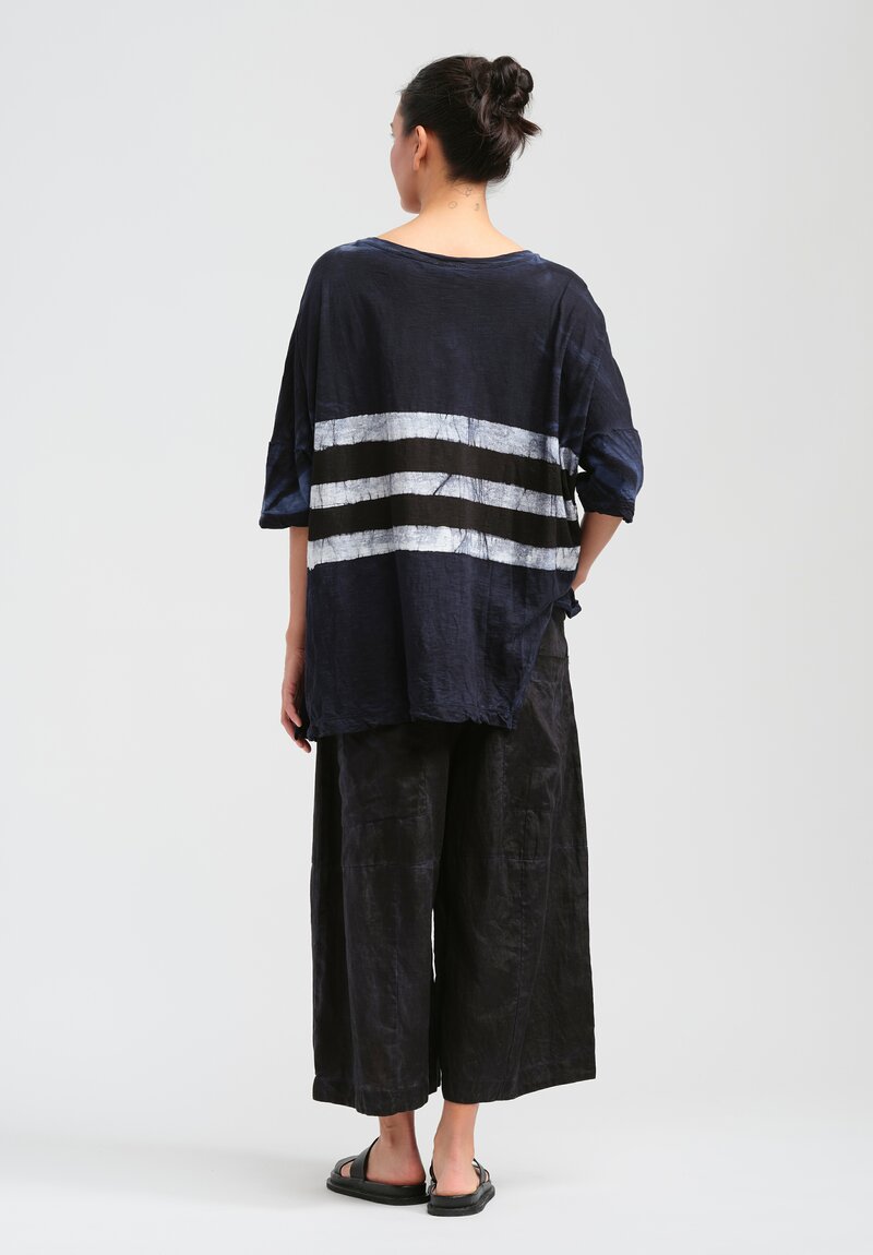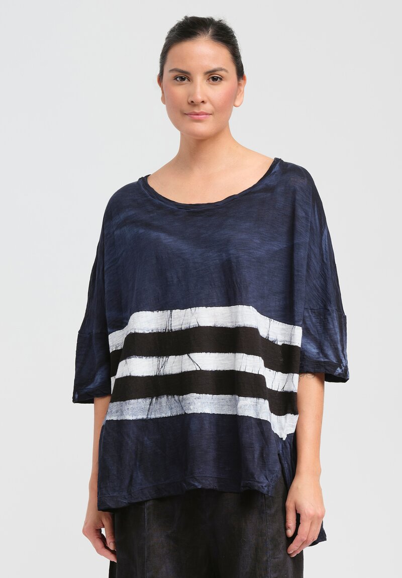 Gilda Midani Pattern Dyed Short Sleeve Super Tee in Blue, Black & White Stripes