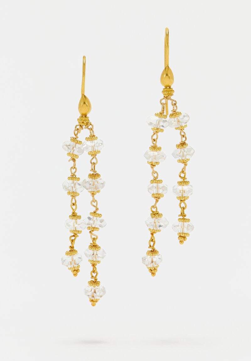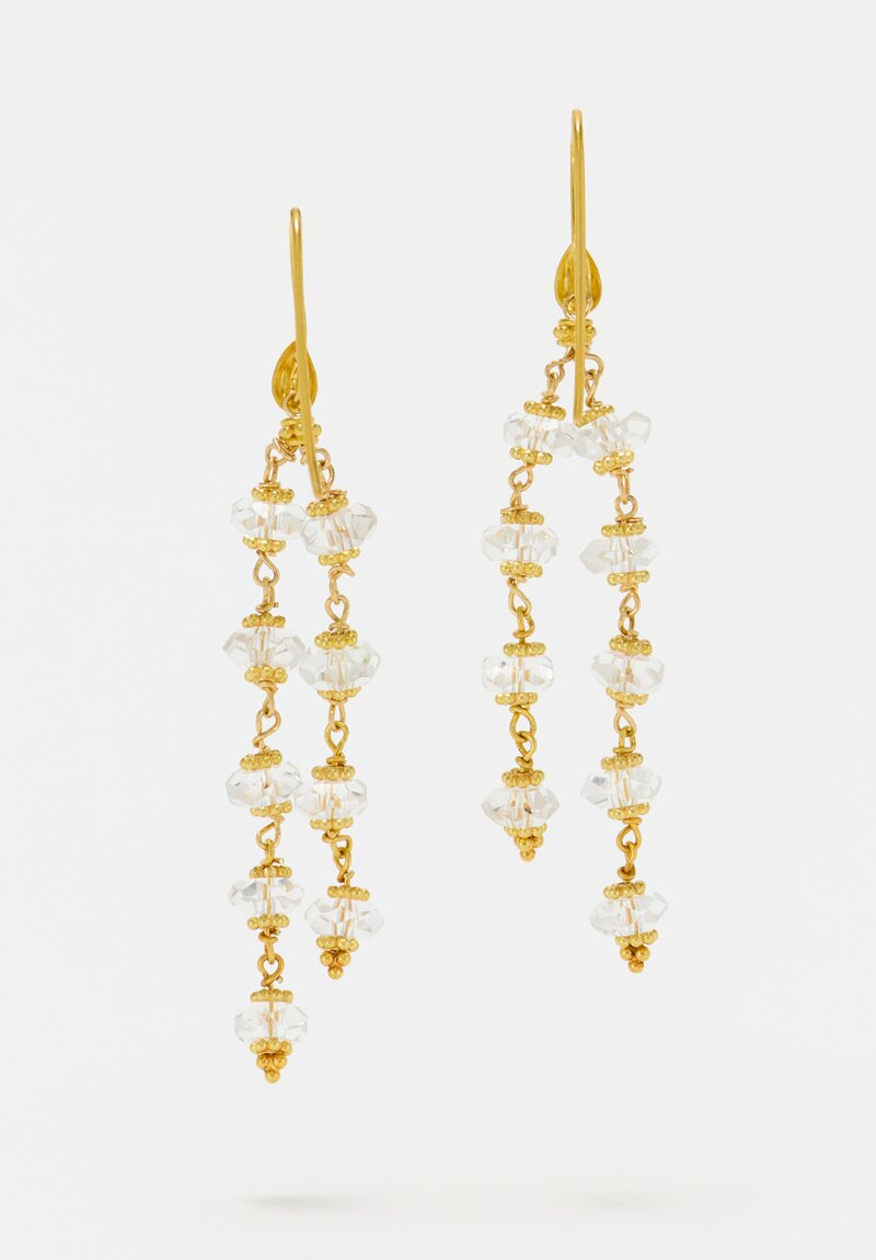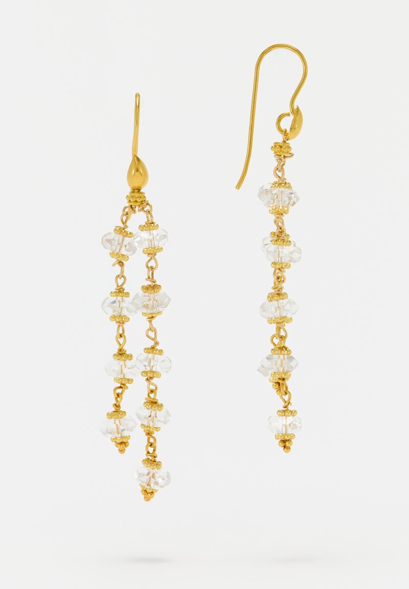 Greig Porter 18K Gold Dotted Disc & Herkimer Diamond Quartz Double Strand Long Earrings