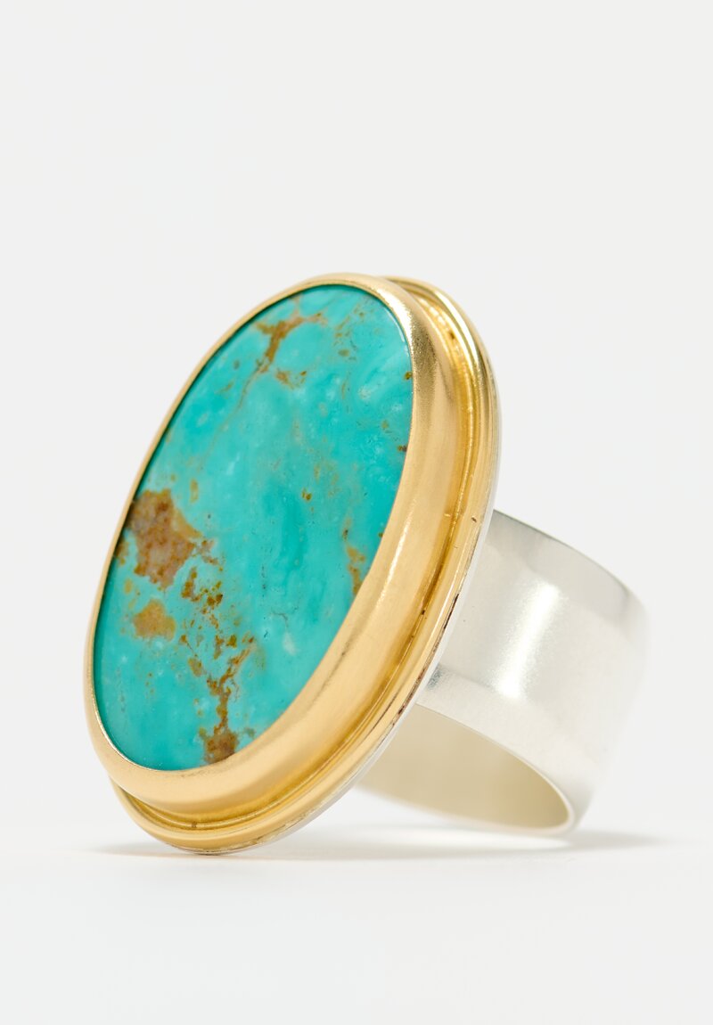 Greig Porter 18K Gold & Sterling Silver Oval Ring with Kingman Turquoise