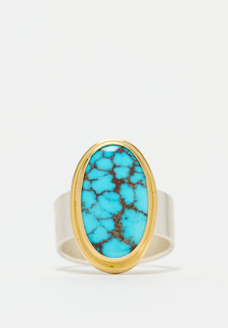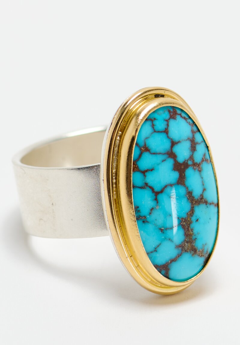 Greig Porter 18K Gold & Sterling Silver Oval Ring with Persian Turquoise