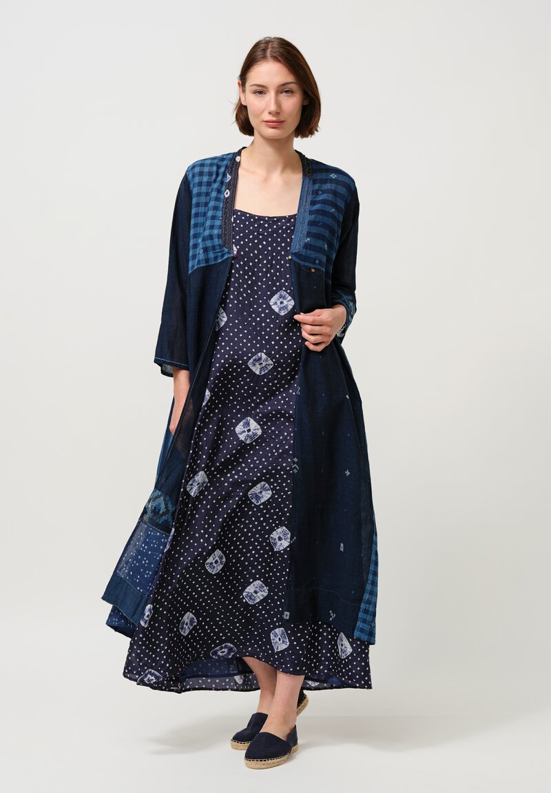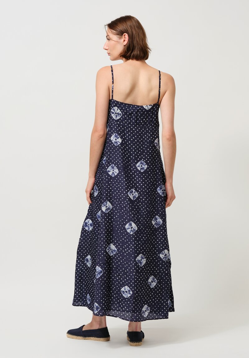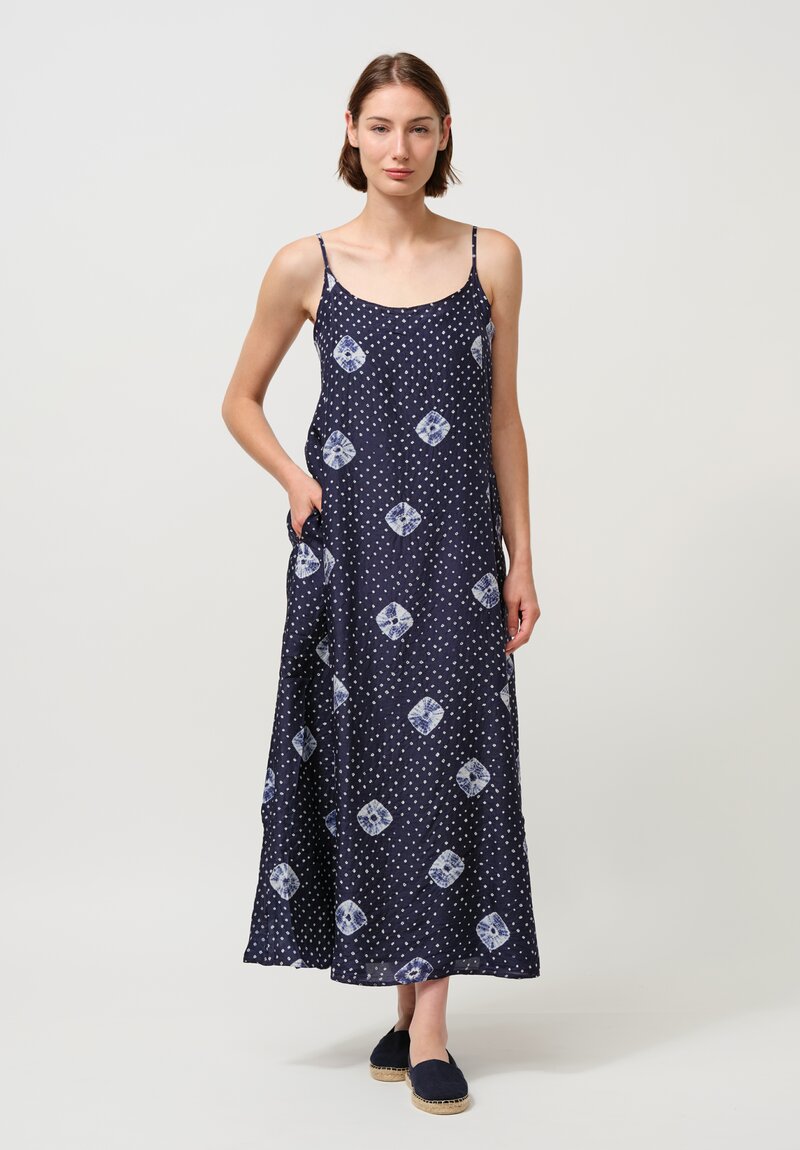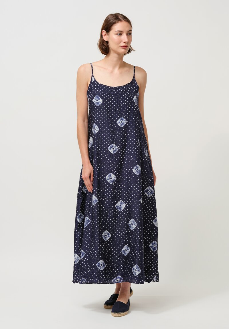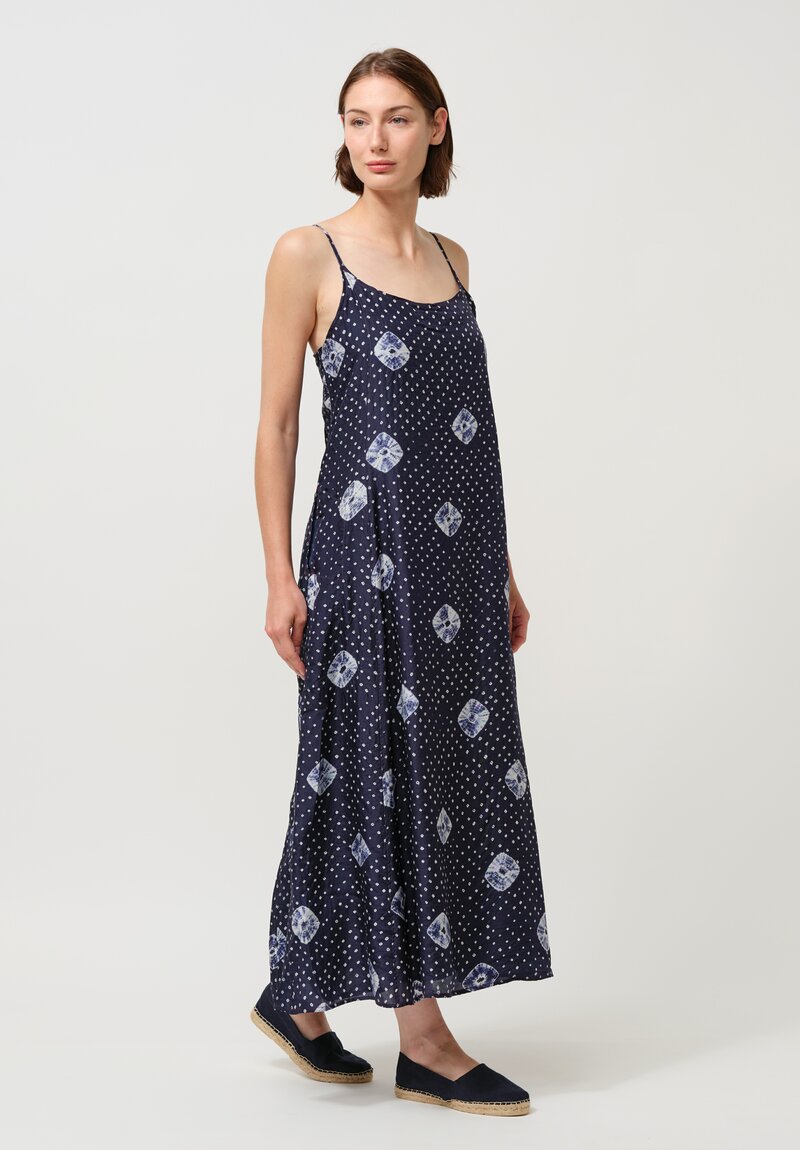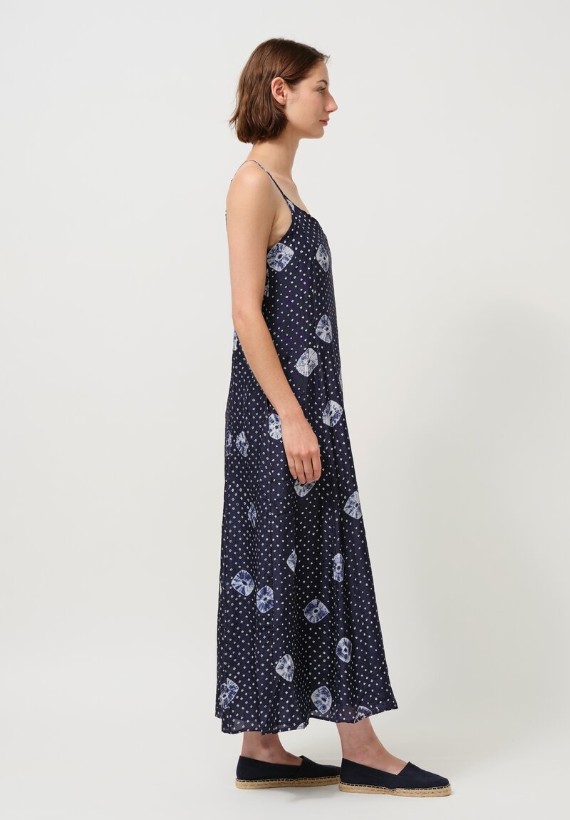Silk & Cotton Bandhani Slip Dress in Navy Blue