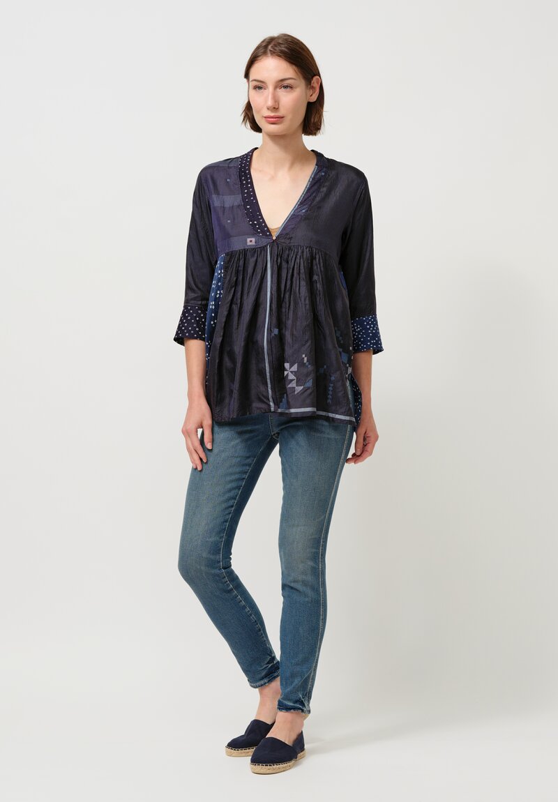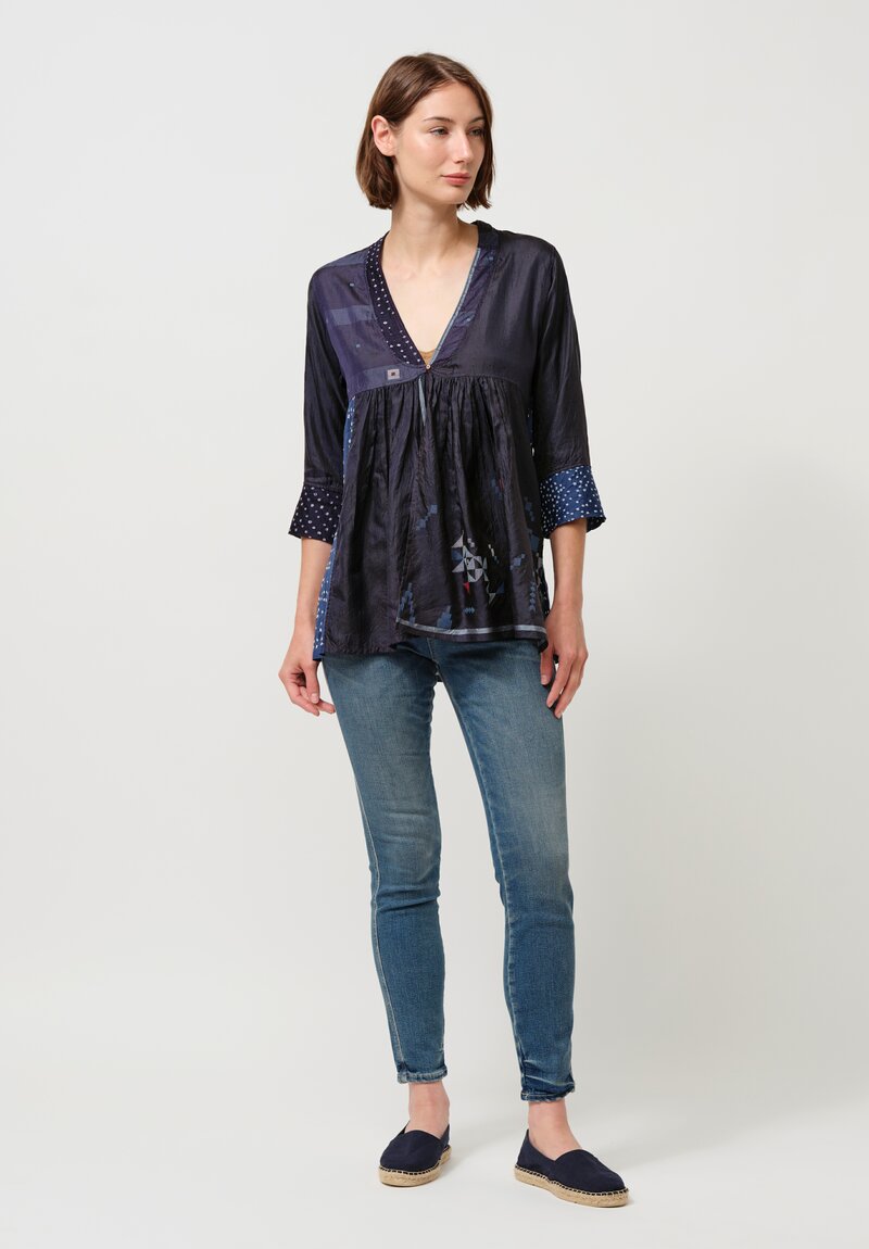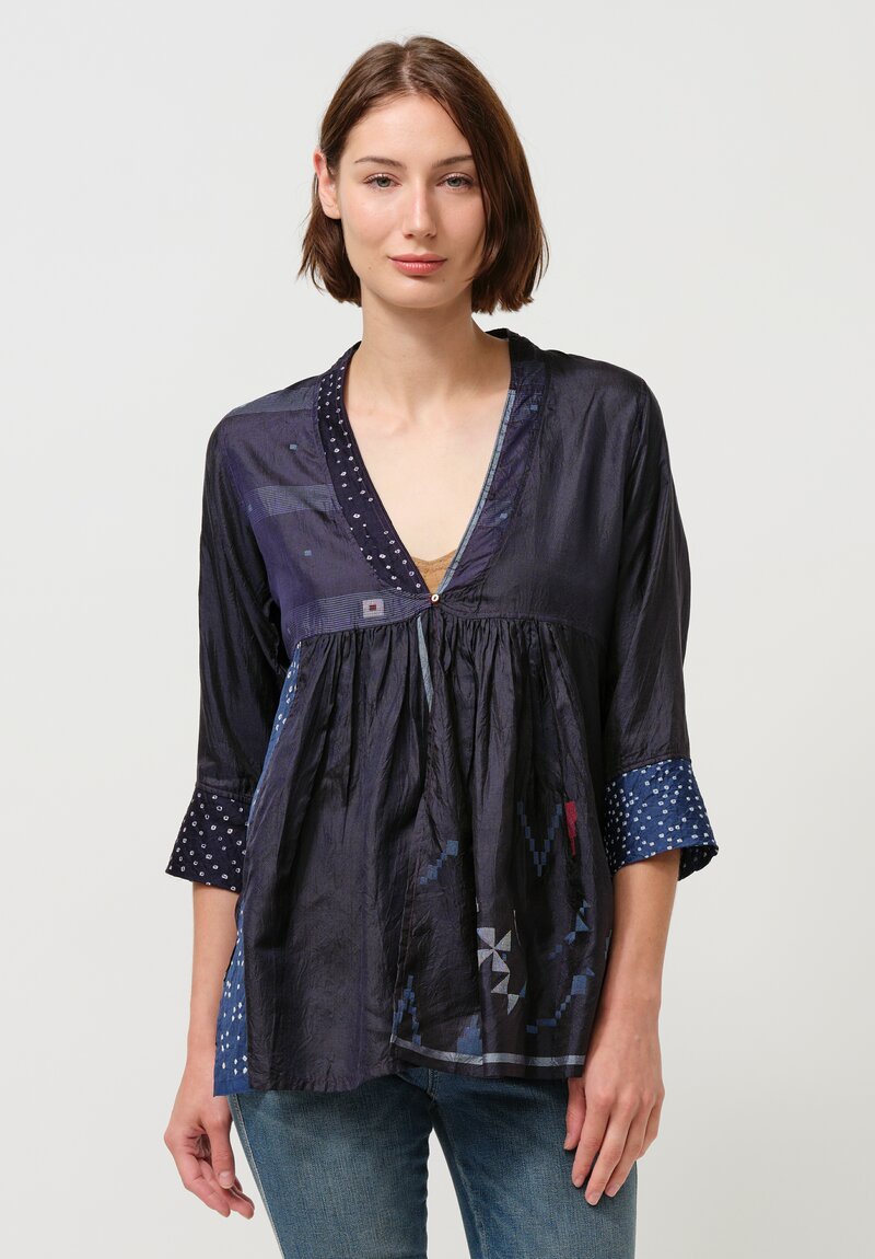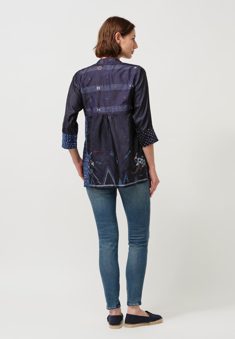 Injiri Silk & Cotton Jamdani Overshirt in Navy Blue