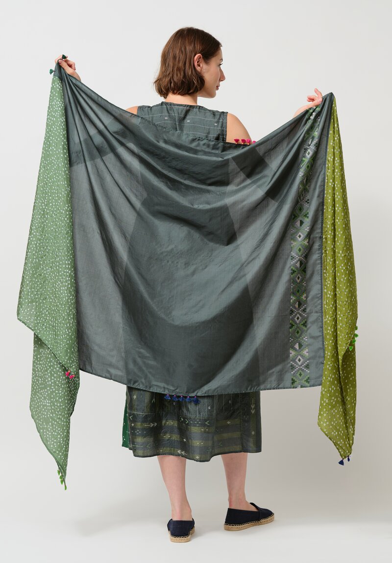 Injiri Silk Jamdani Rectangular Scarf in Green