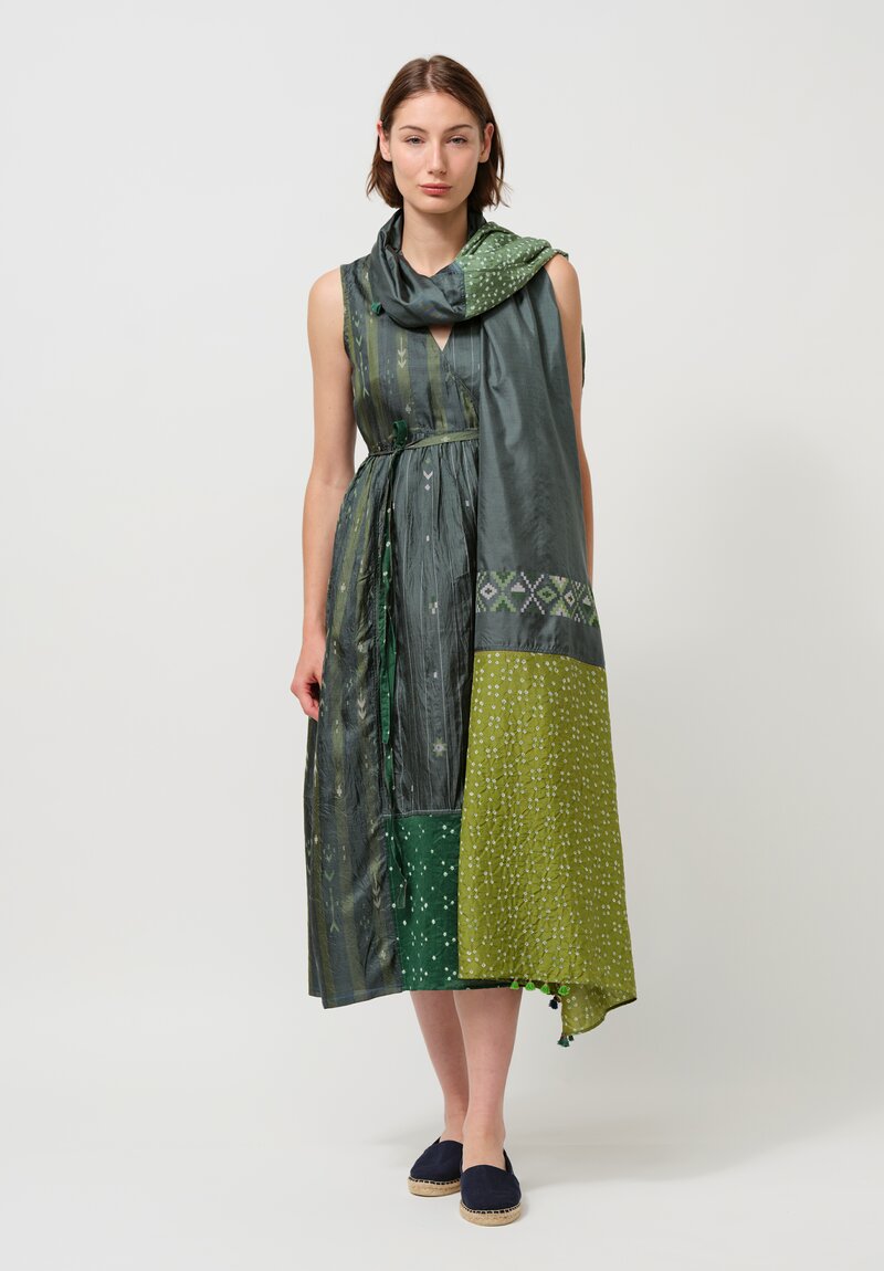 • Injiri Silk & Cotton Jamdani Sleeveless Wrap Dress in Emerald Green