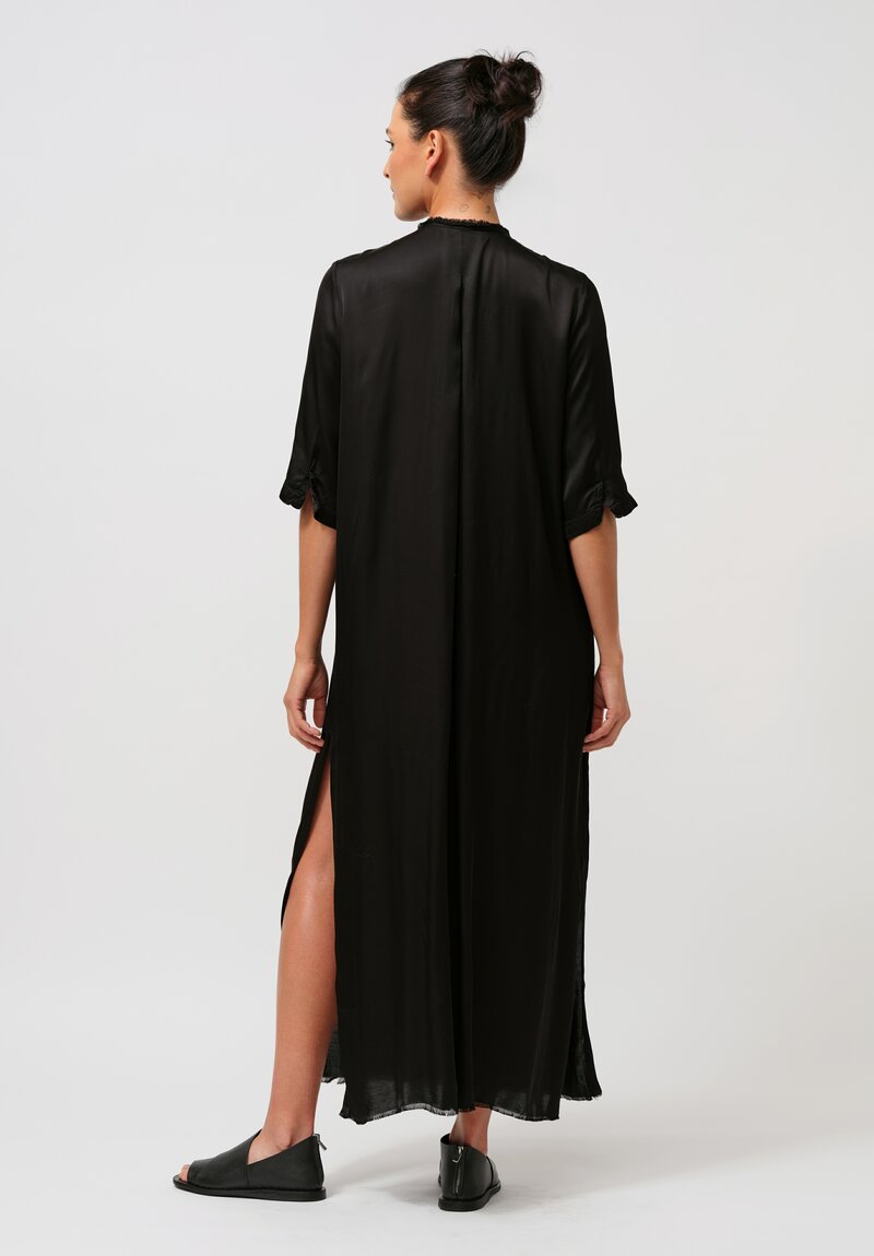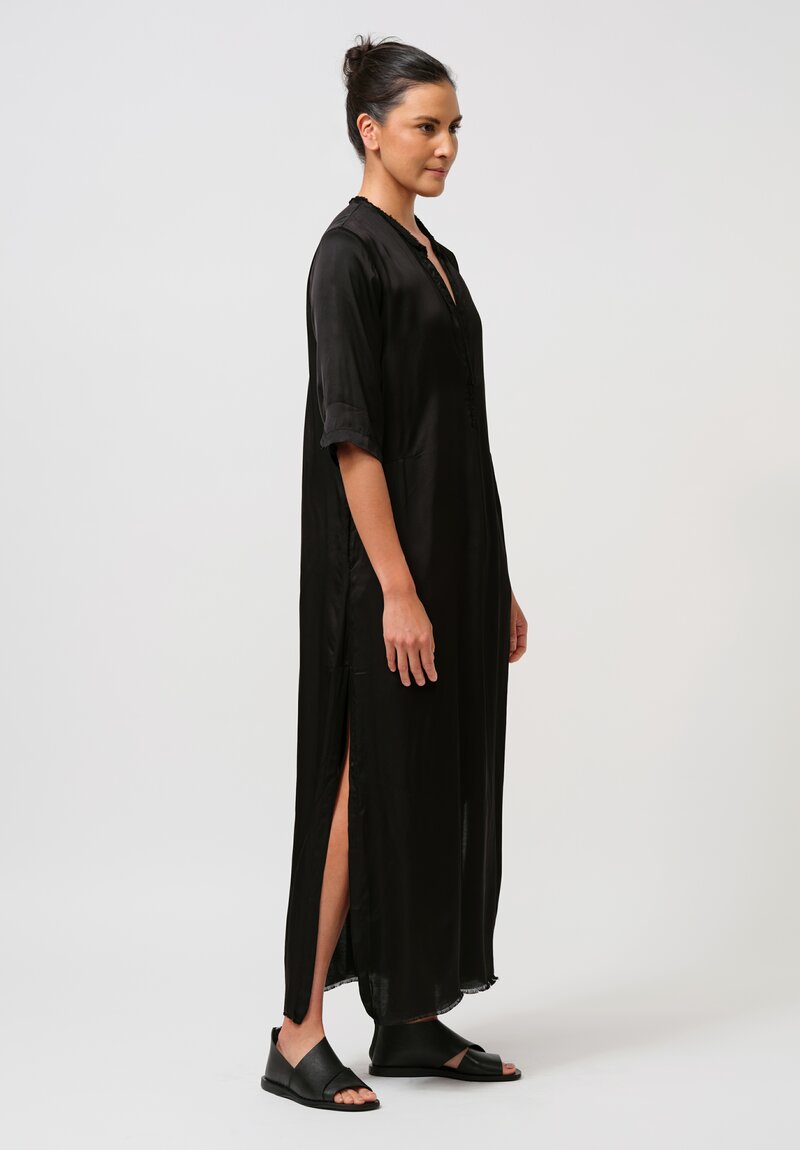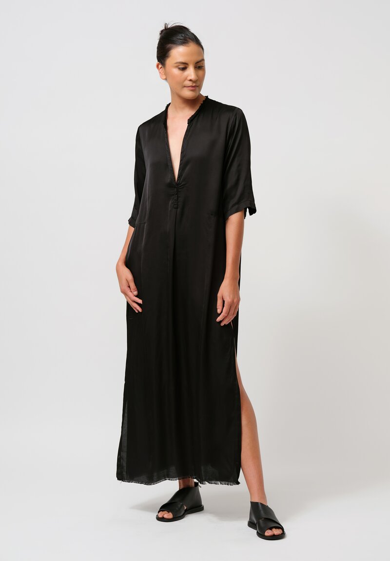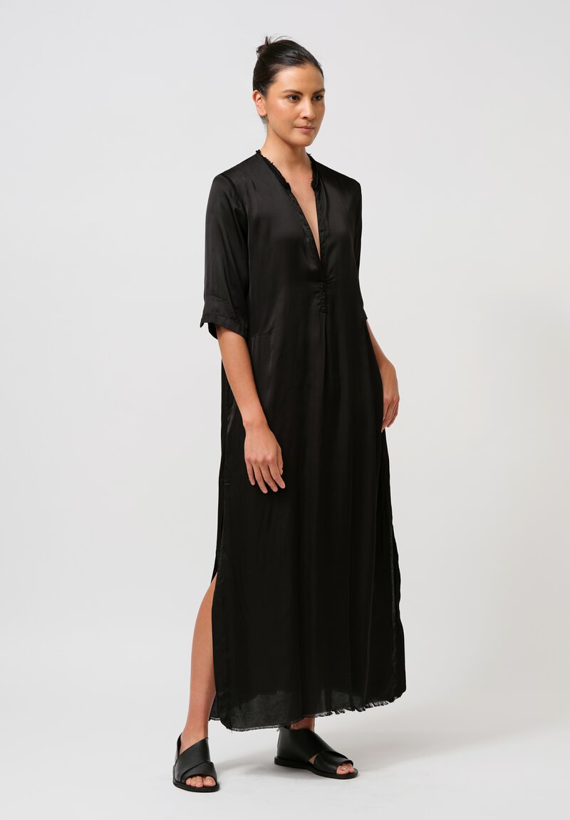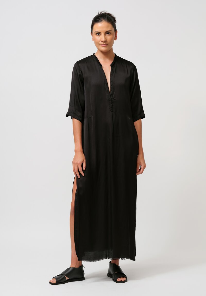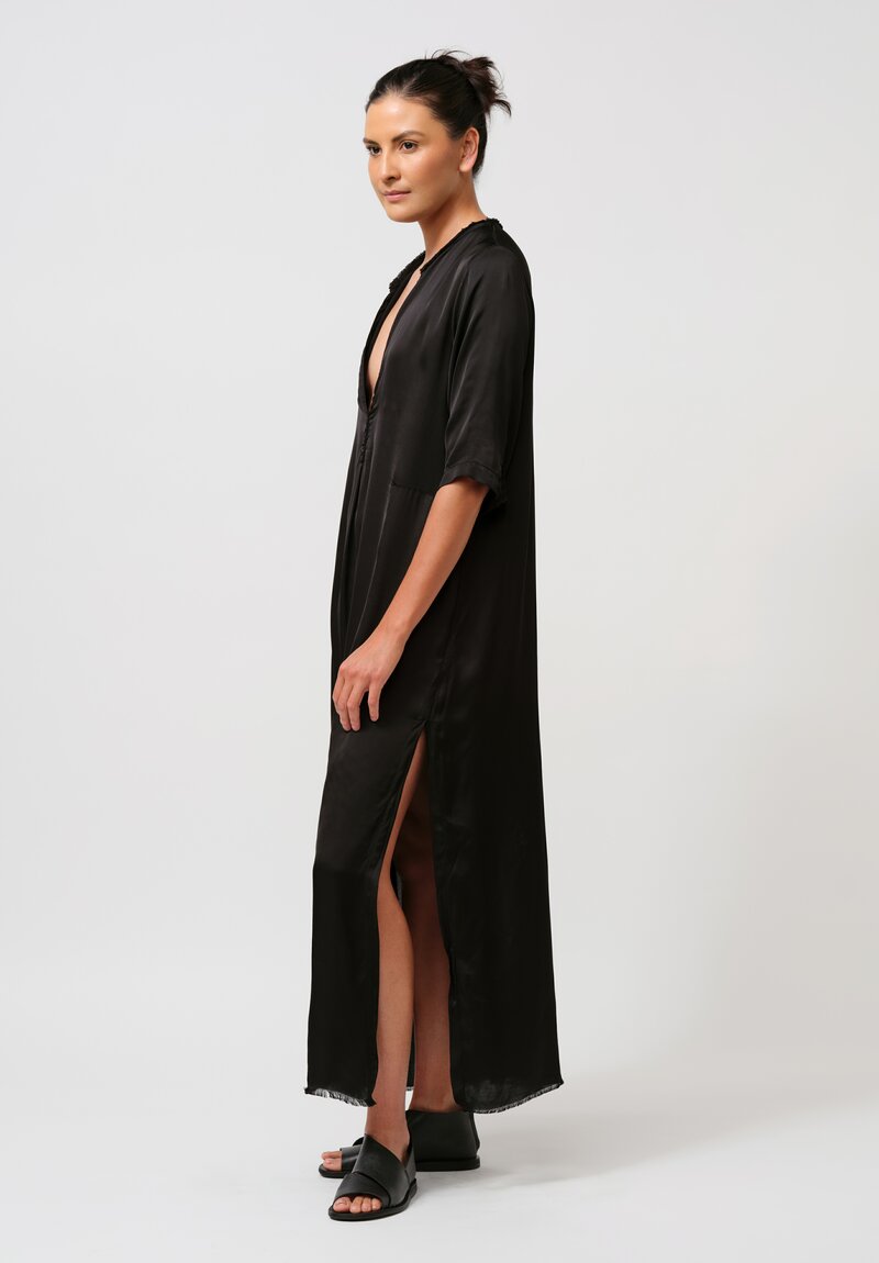 Jaga Satin Alla Deep V-Neck Dress in Jet Black