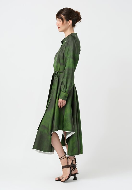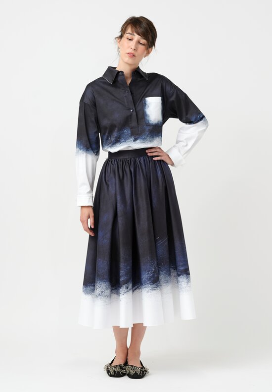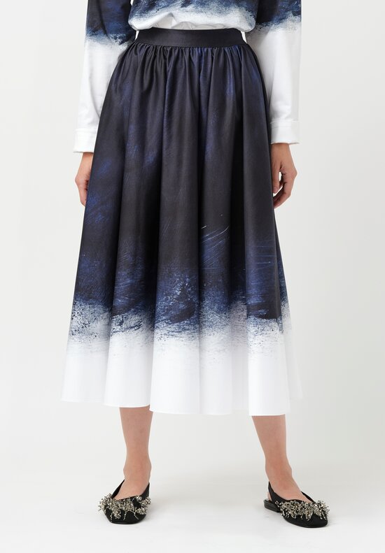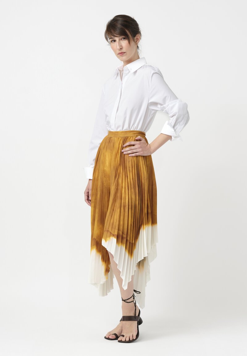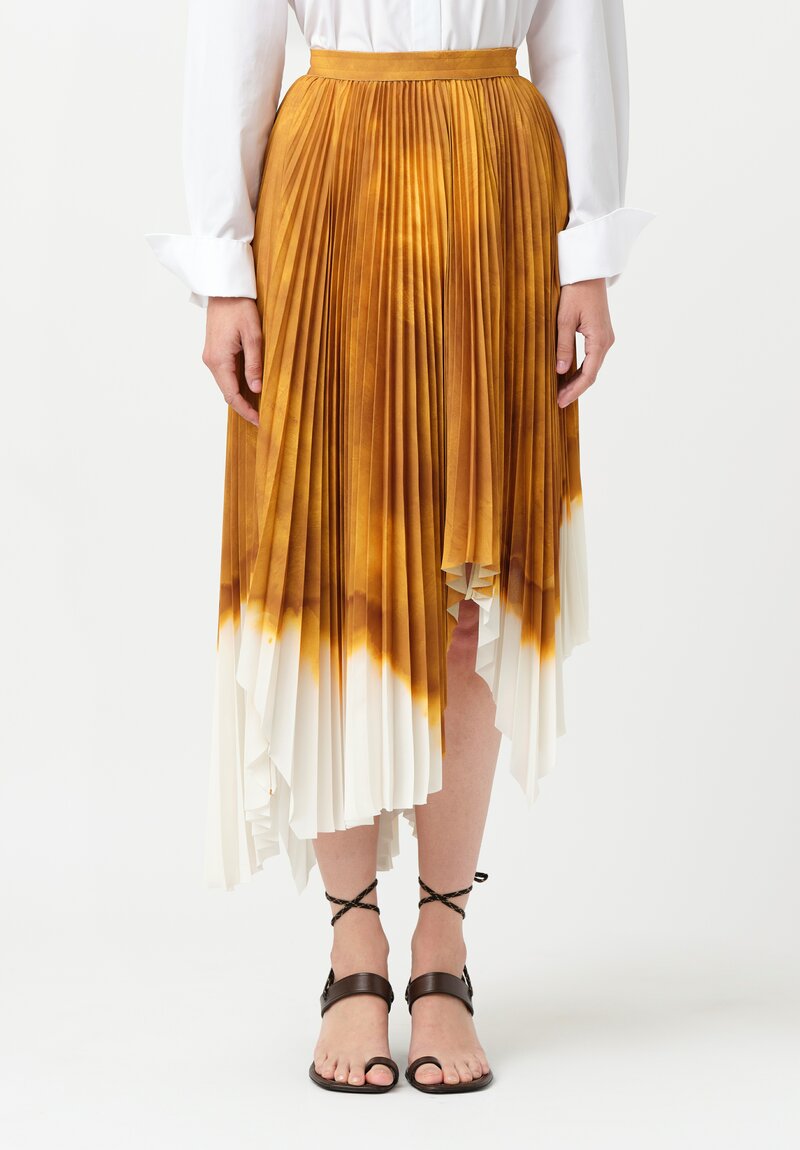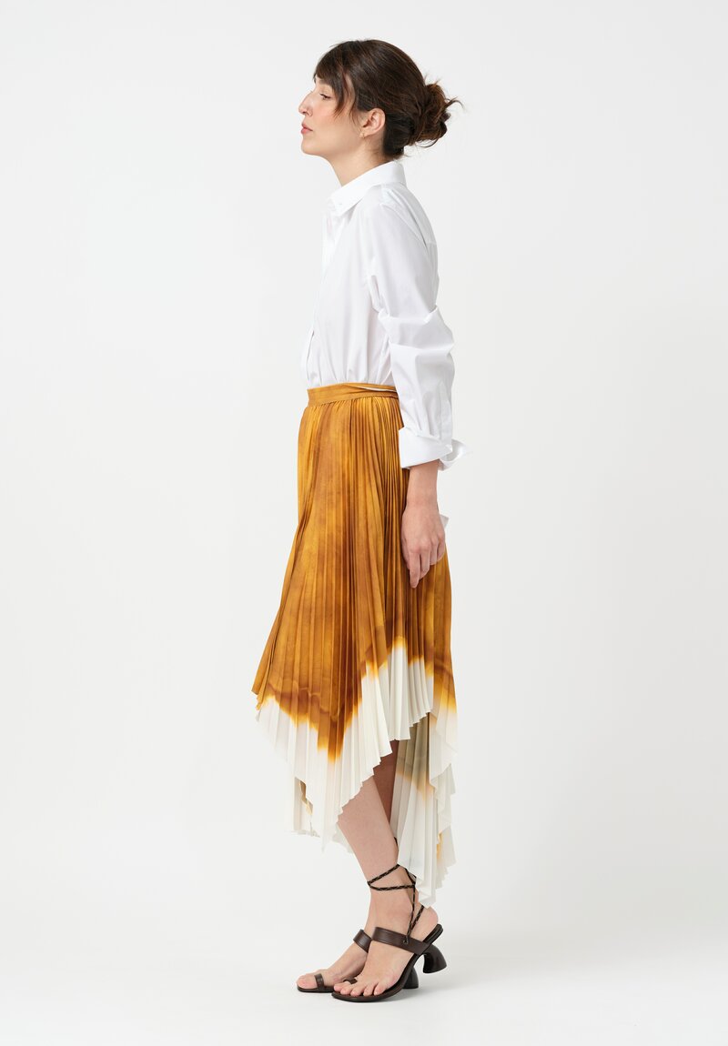 Jason Wu Pleated Handkerchief Circle Skirt in Ochre Yellow & White Watercolor