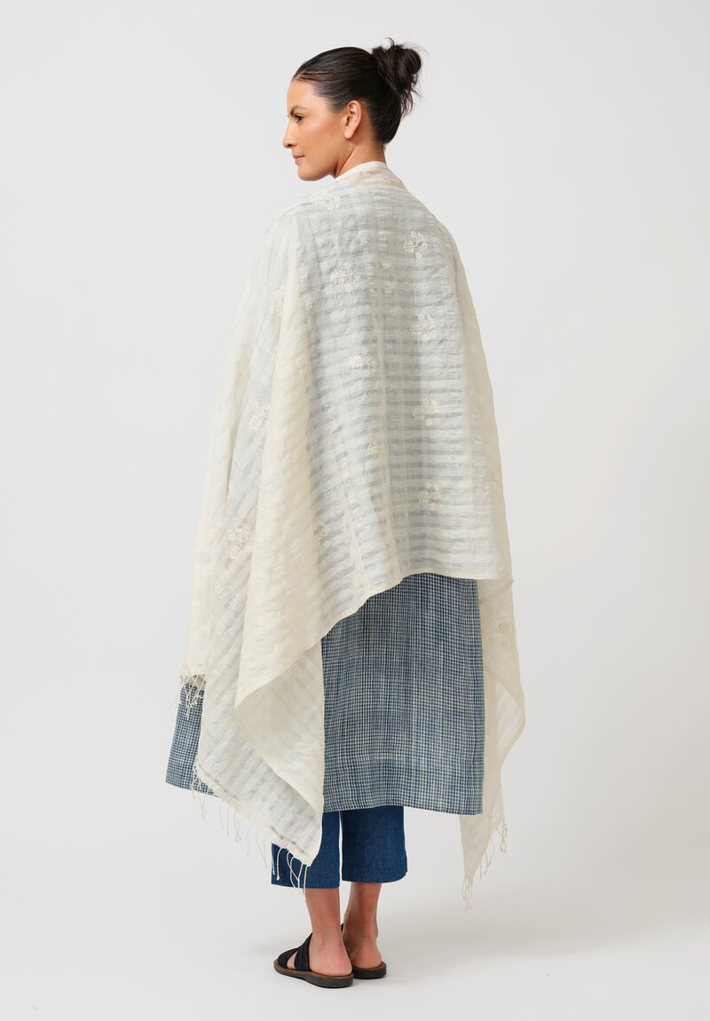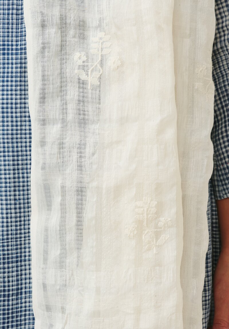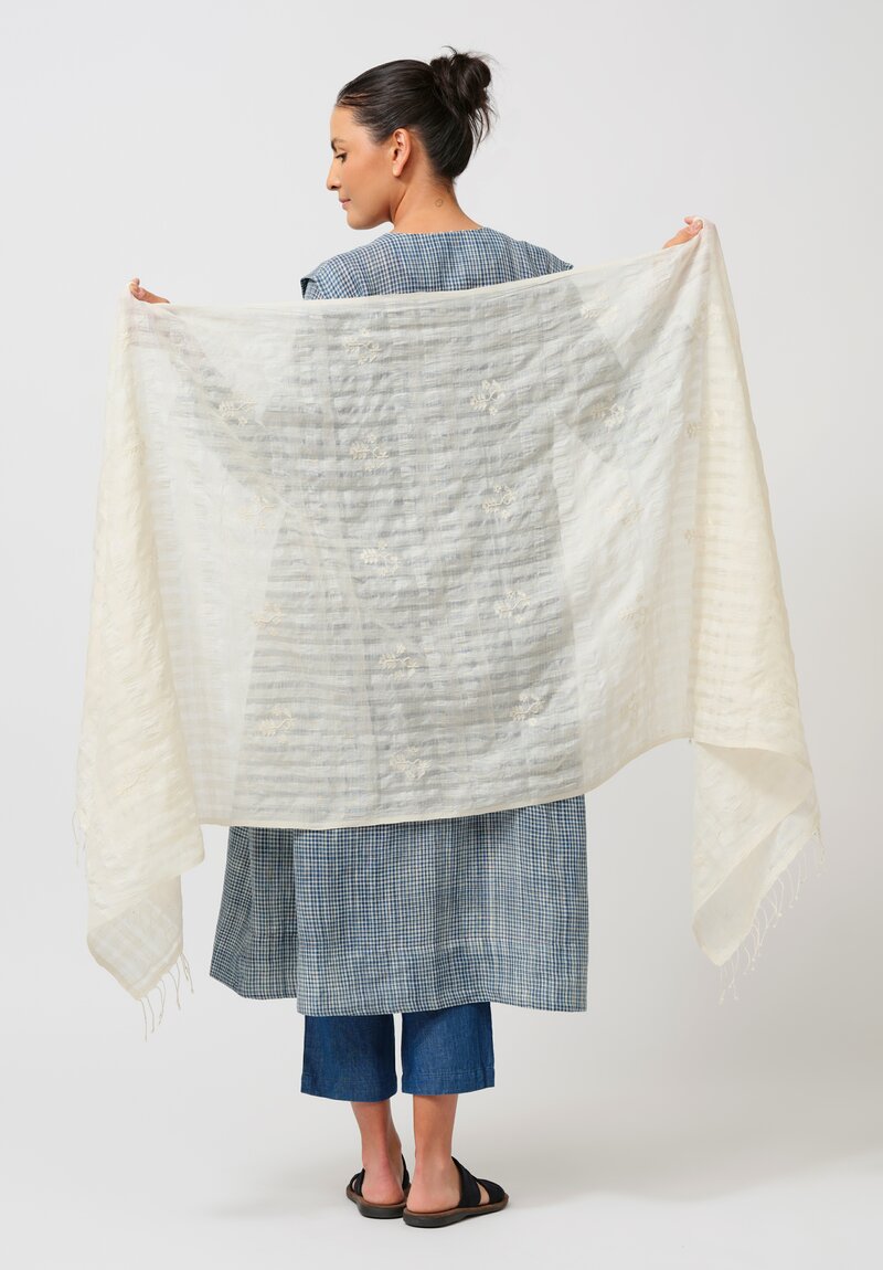 Maku Textiles Mulberry Silk Jamdani Sakura Embroidered Scarf in Raw White