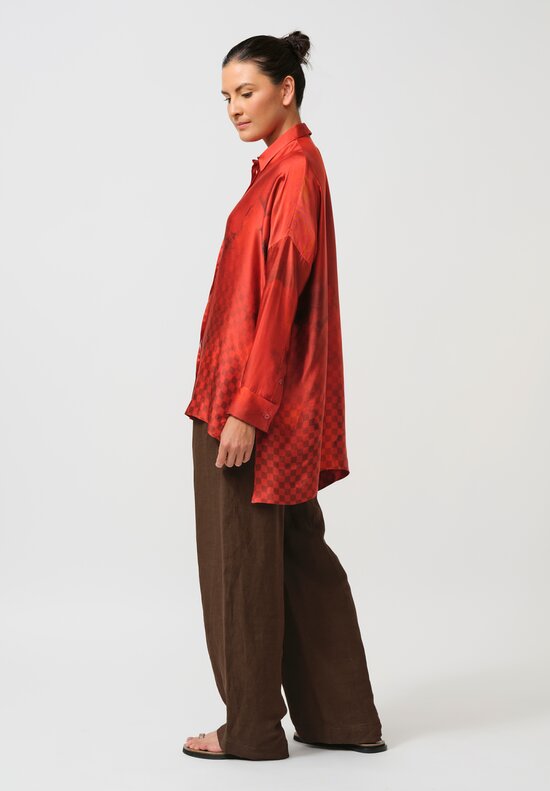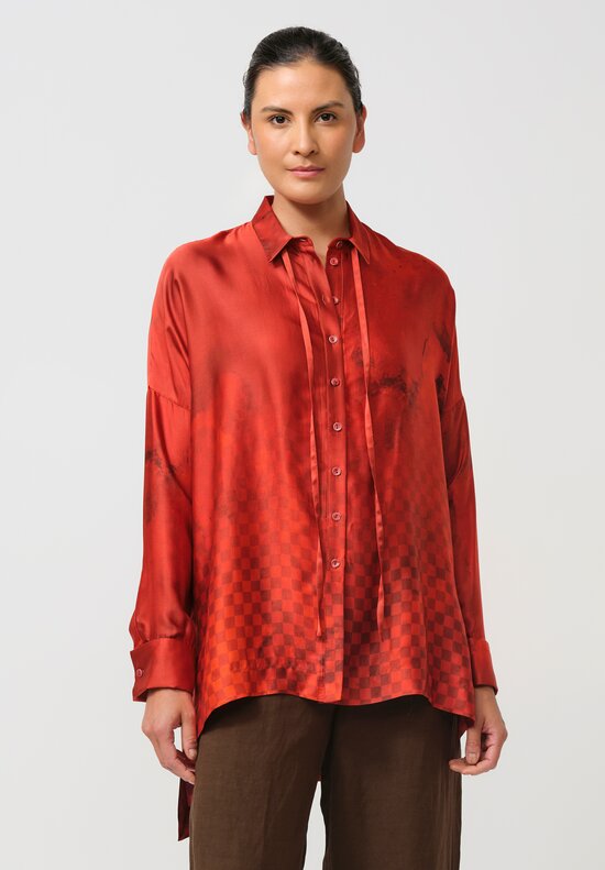 Silk Hooded Button Down Shirt with Slip in Petrol Print & Green