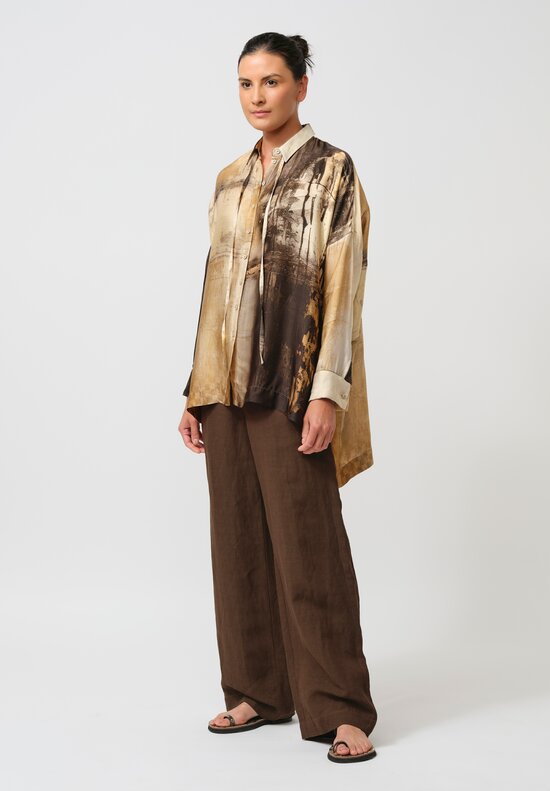 Forme d'Expression Woven Linen 5 Pocket Pants in Khaki Brown