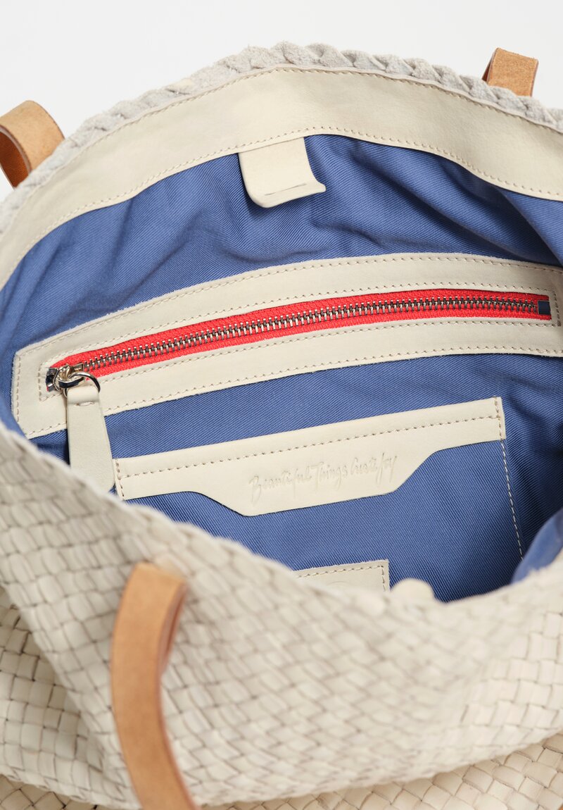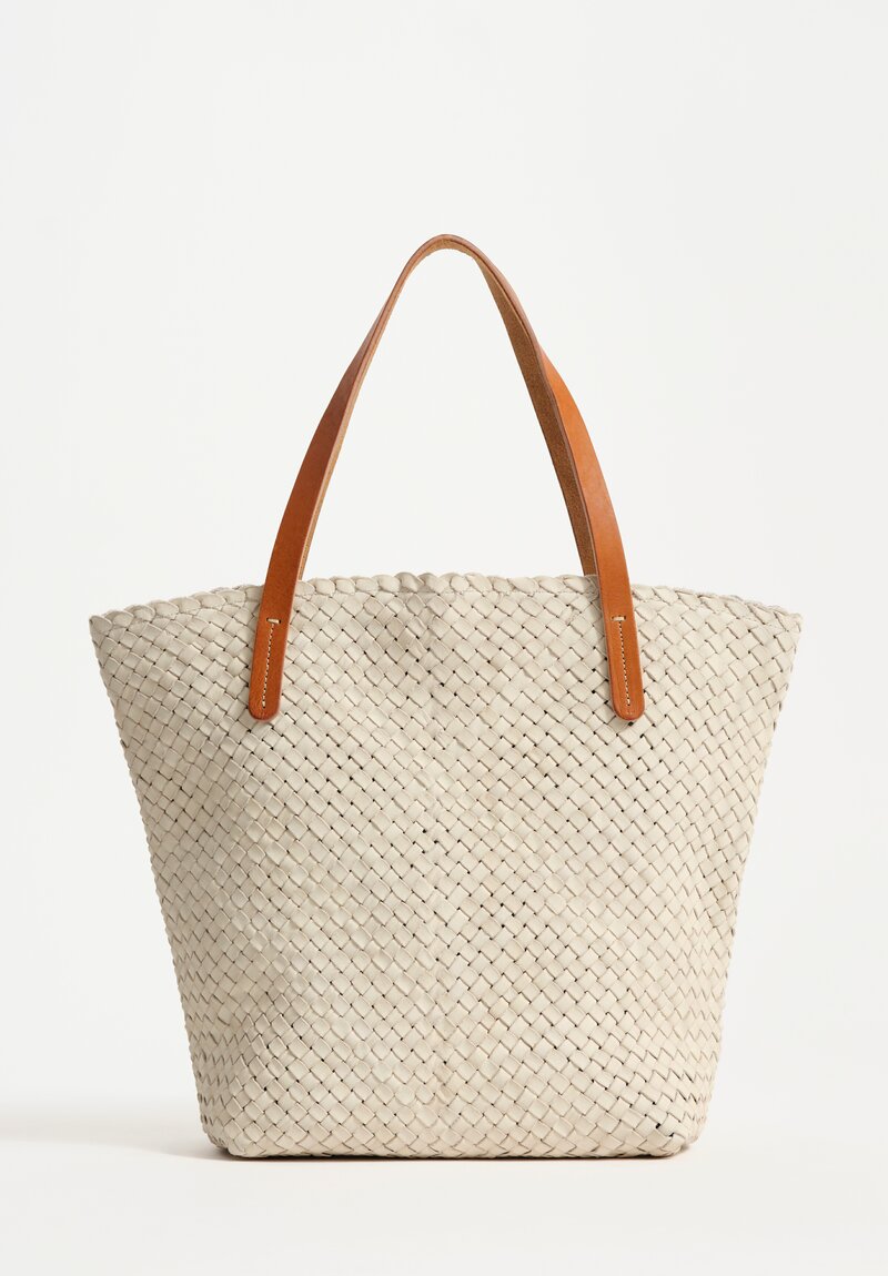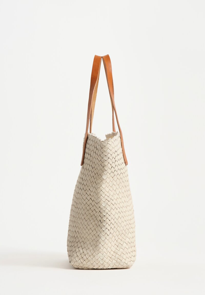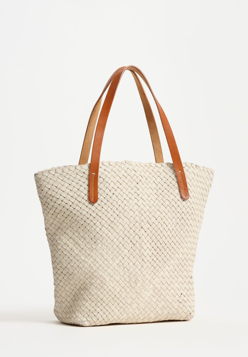 Calf Leather "Antibes" Hand-Woven Tote in Panna Cotta Cream