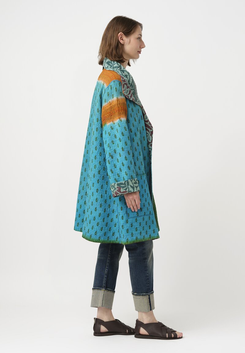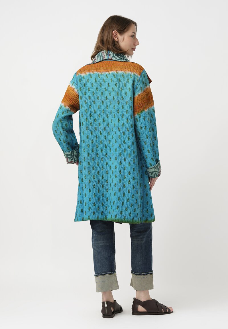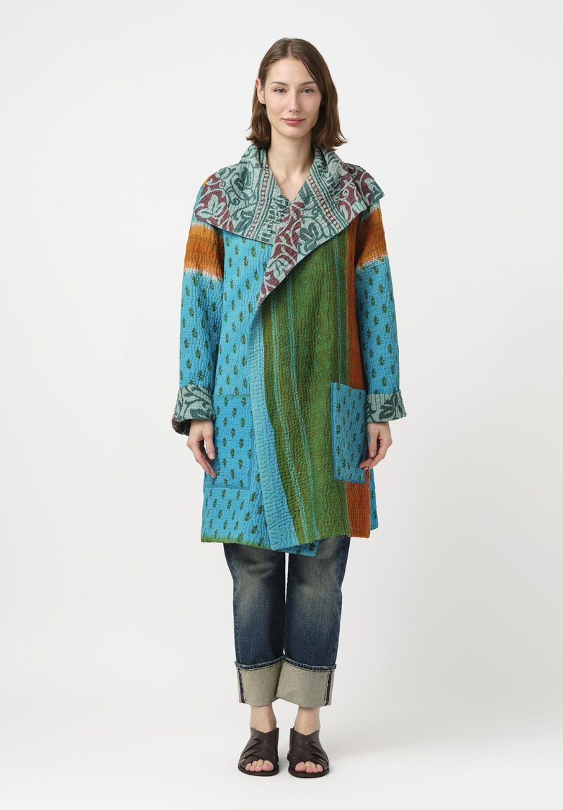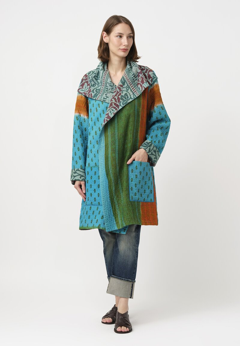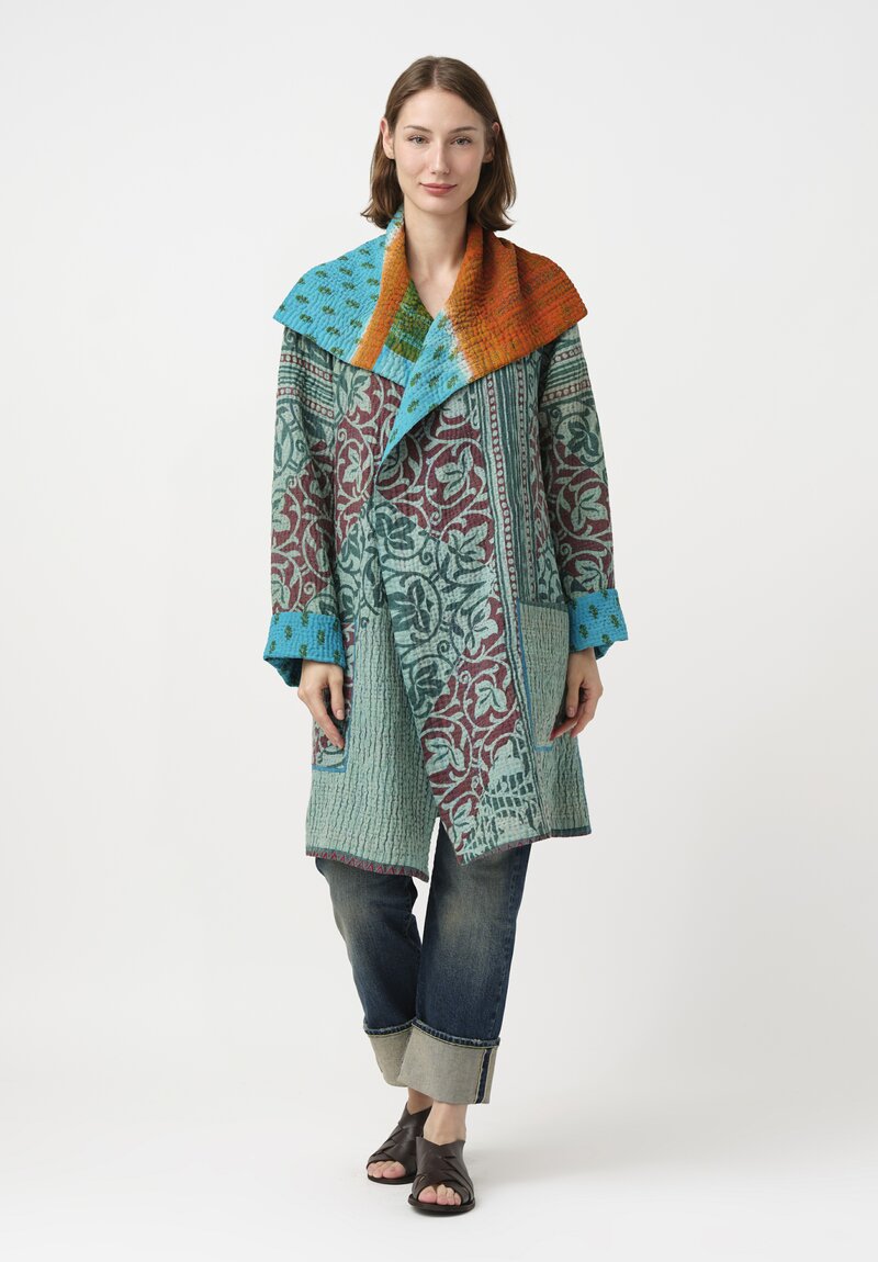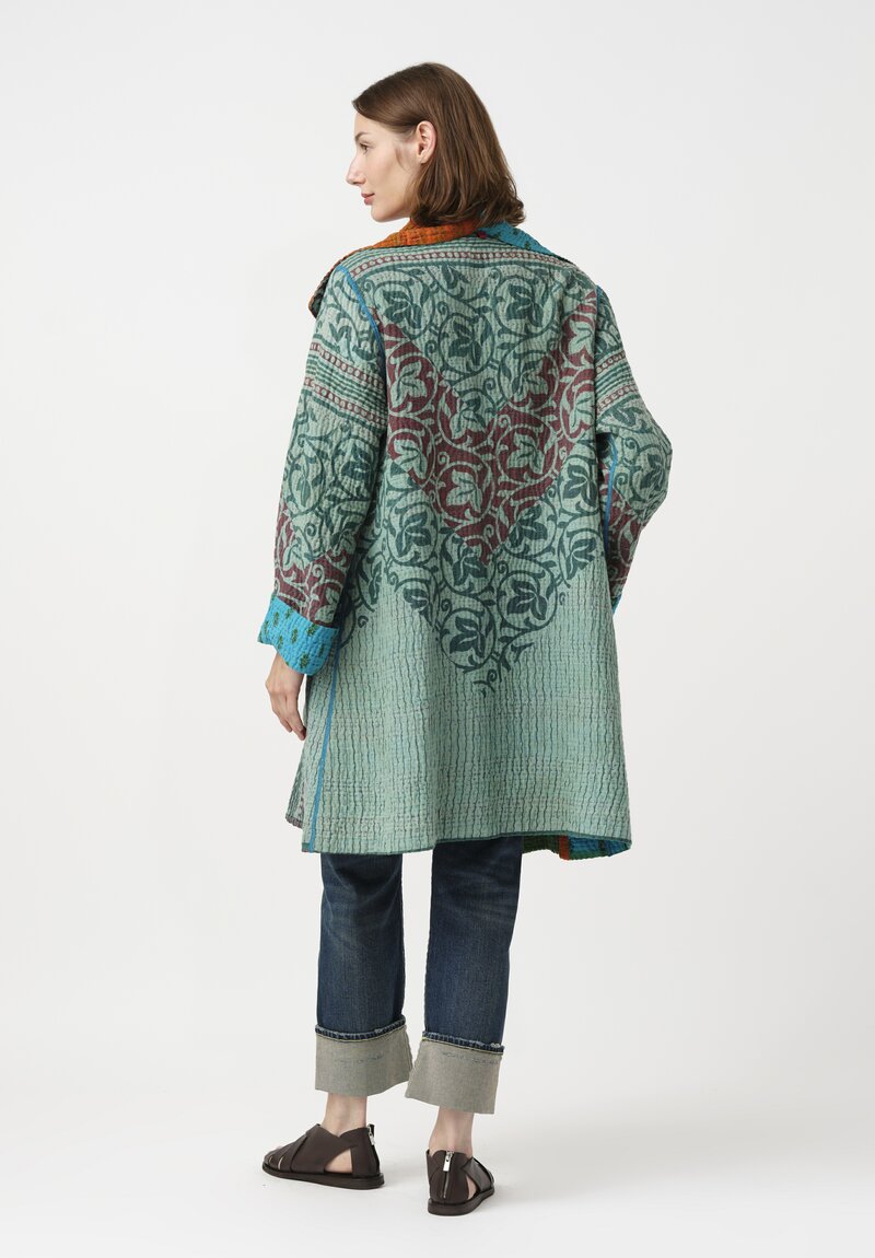 Mieko Mintz Vintage 4-Layer Cotton Kantha Pocket Coat in Teal & Green