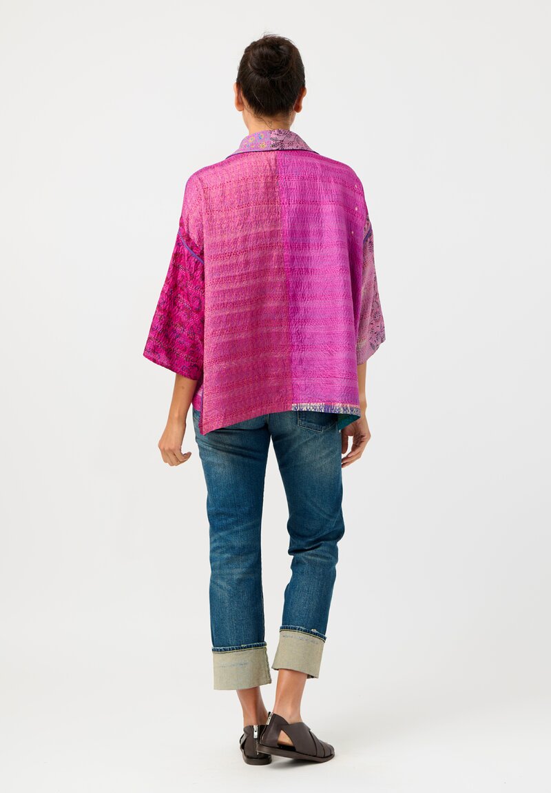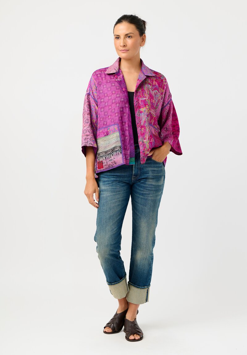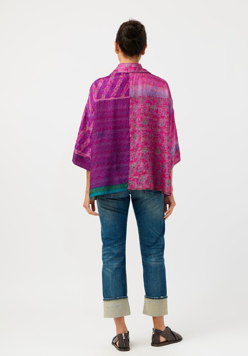 Mieko Mintz Vintage Silk Kantha Cropped Tent Shirt in Purple, Pink & Green