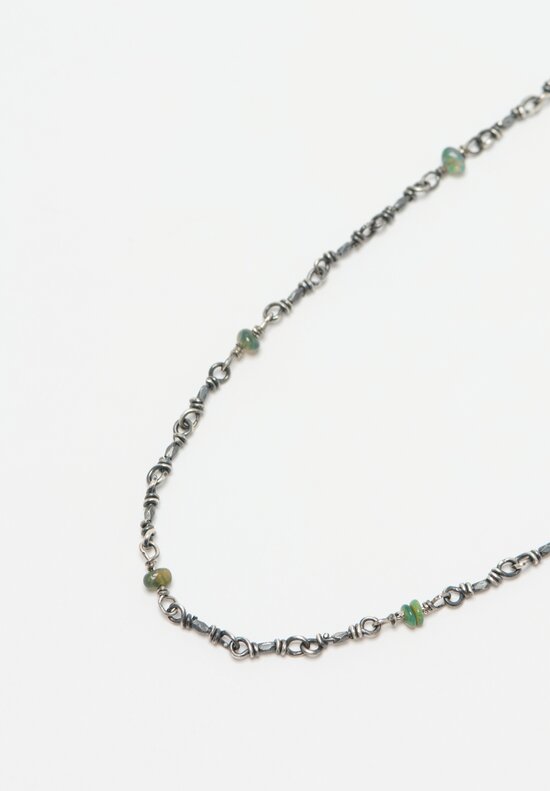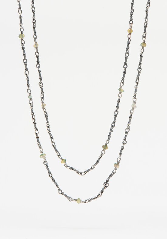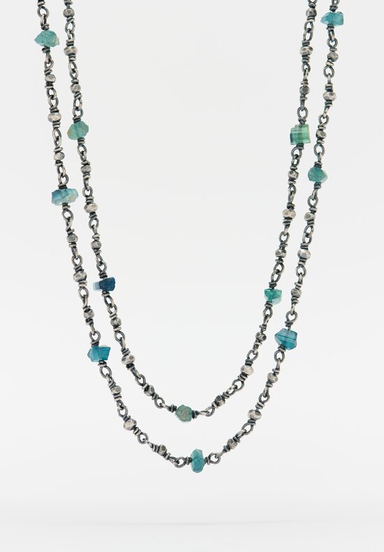 In 1989, Miranda Hicks began jewelry making through an apprenticeship with her sister Heather Hicks, in Taos, New Mexico. It wasn't until 1994 that she created her own line of jewelry, producing work that has been worn by women from many different backgrounds. In this collection, Miranda has created items that are inspired by her love of antiquity, and greatly influenced by her love of raw and natural minerals. In each piece she has experimented with the process of handmade chain in her unique "eclectic bohemian" style.
