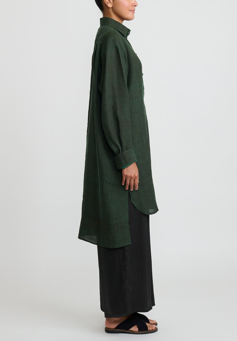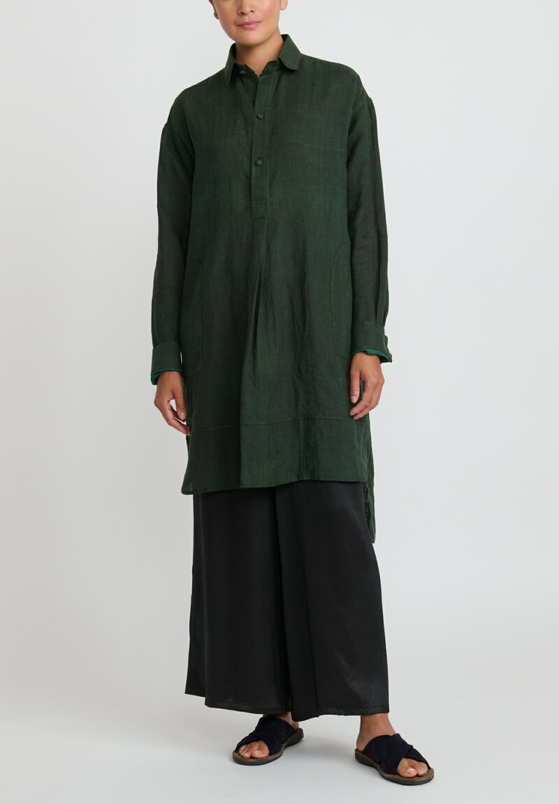 Noir Handmade Mud Linen Painter's Blouse in Black & Green