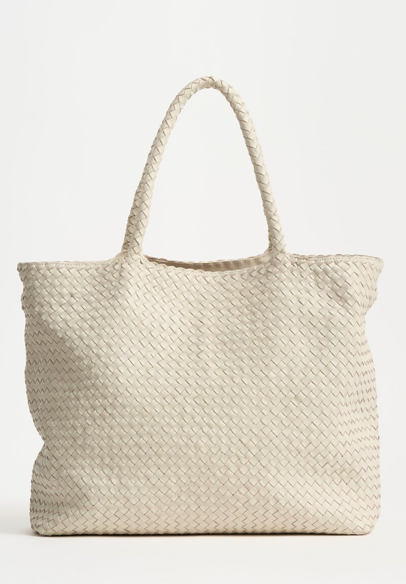 Officine Creative Woven Leather Large Class Tote Bag in Vapore White
