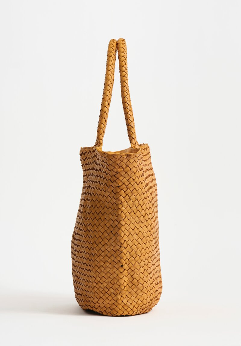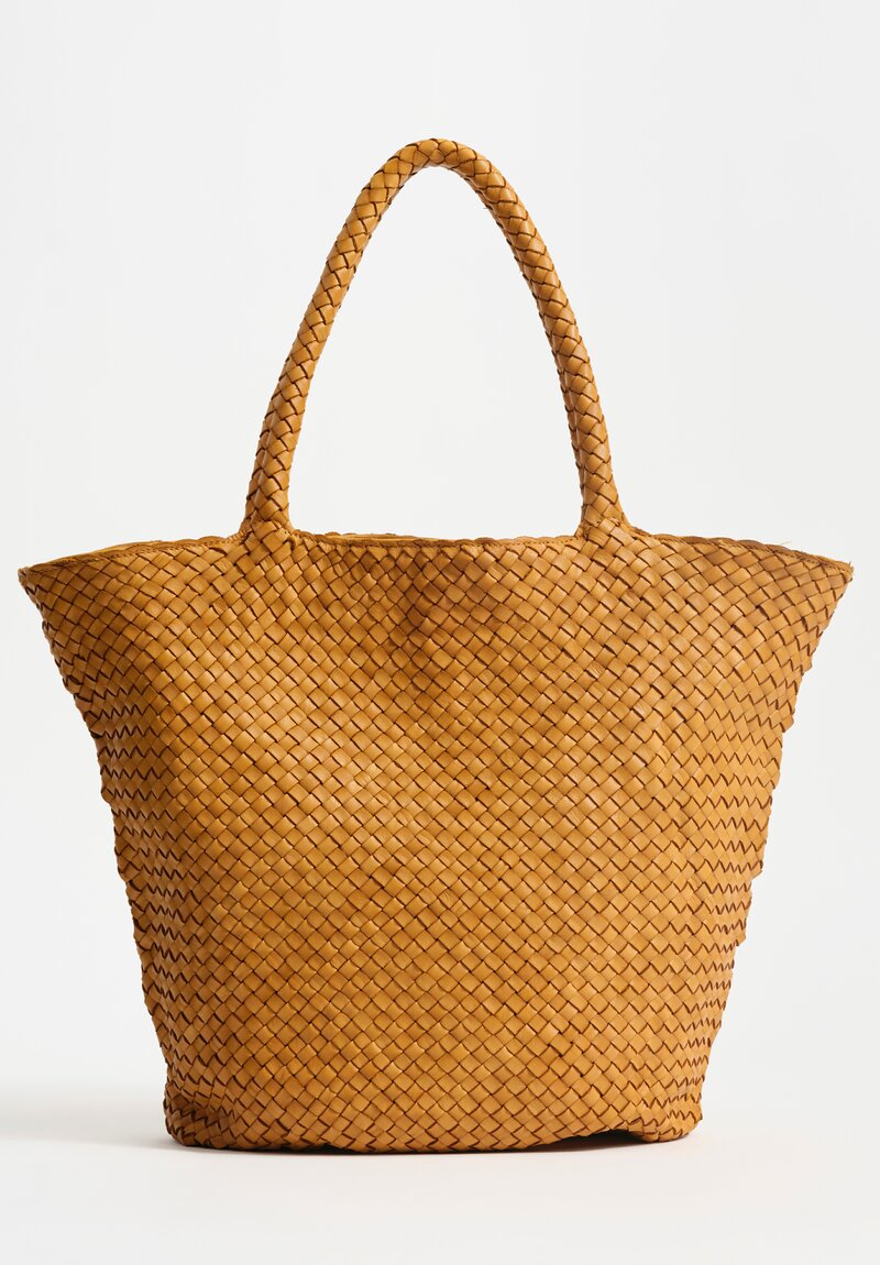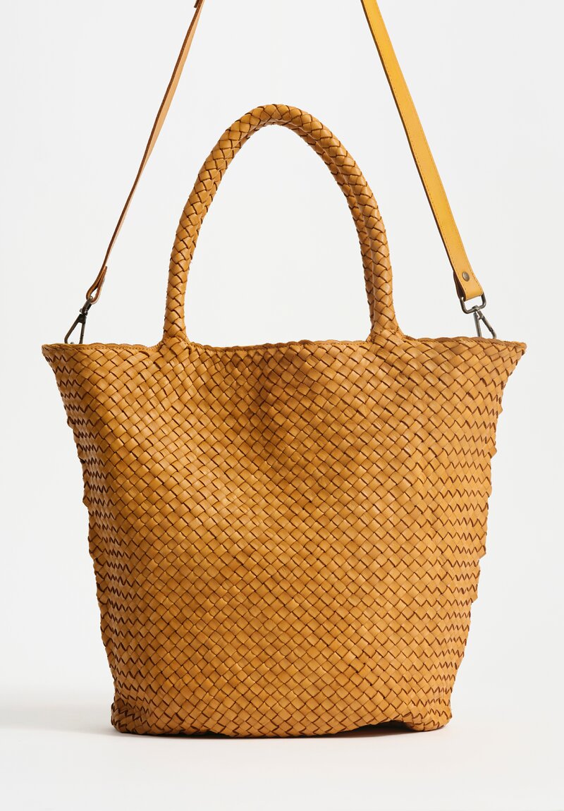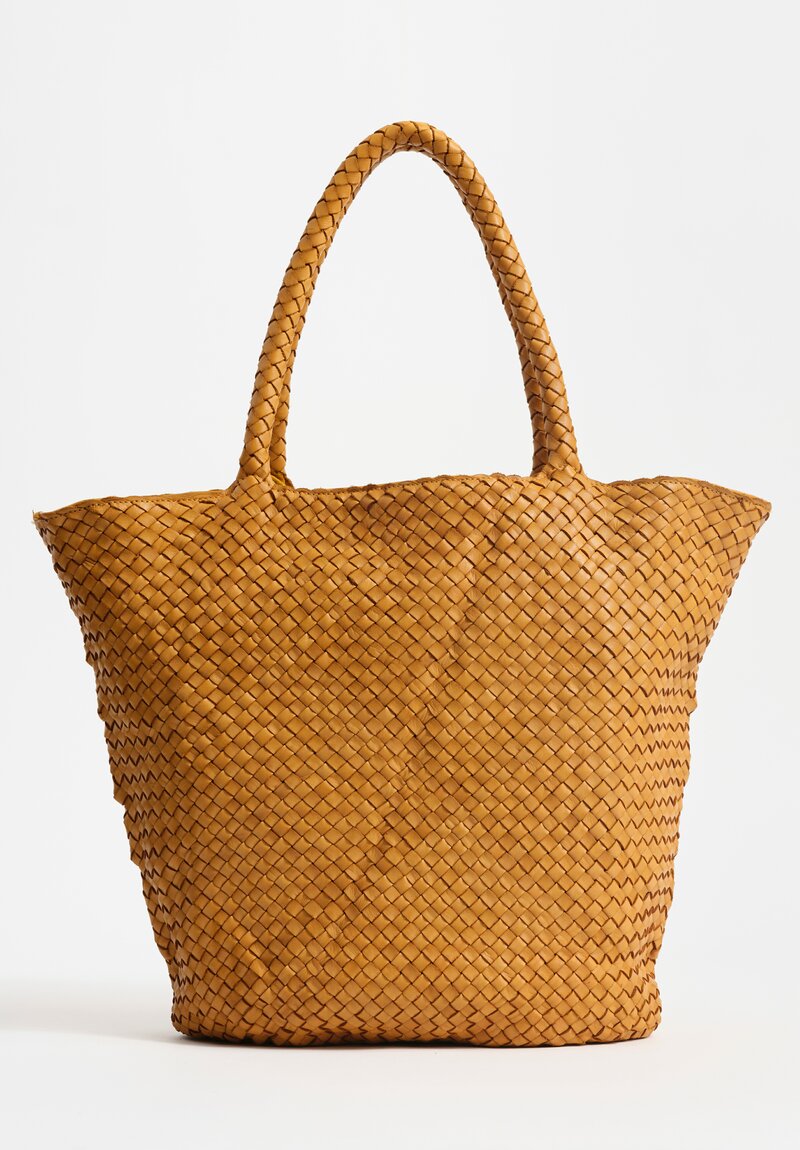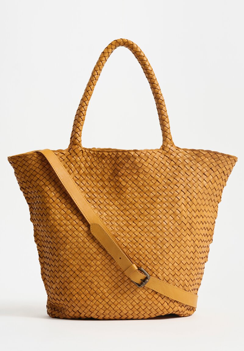 Woven Leather Large Trapezoid Class Tote in Mustard Yellow