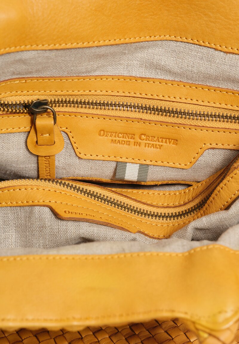 Officine Creative Woven Leather Large Trapezoid Class Tote in Mustard Yellow