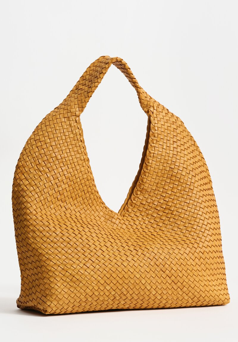 Officine Creative Woven Leather Shoulder Bag in Mustard