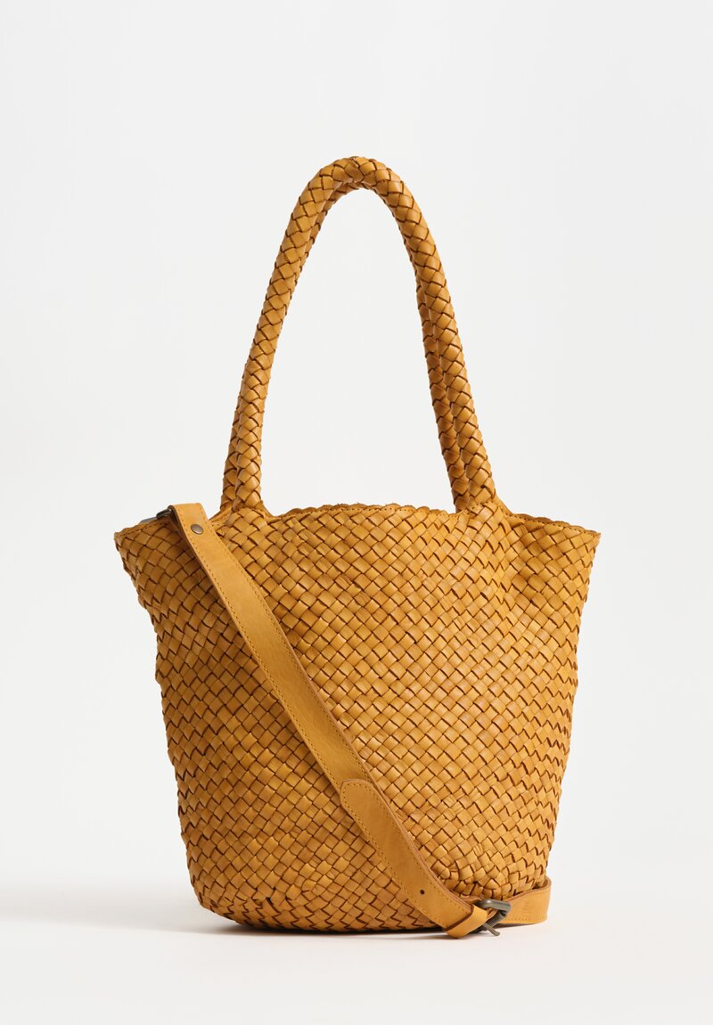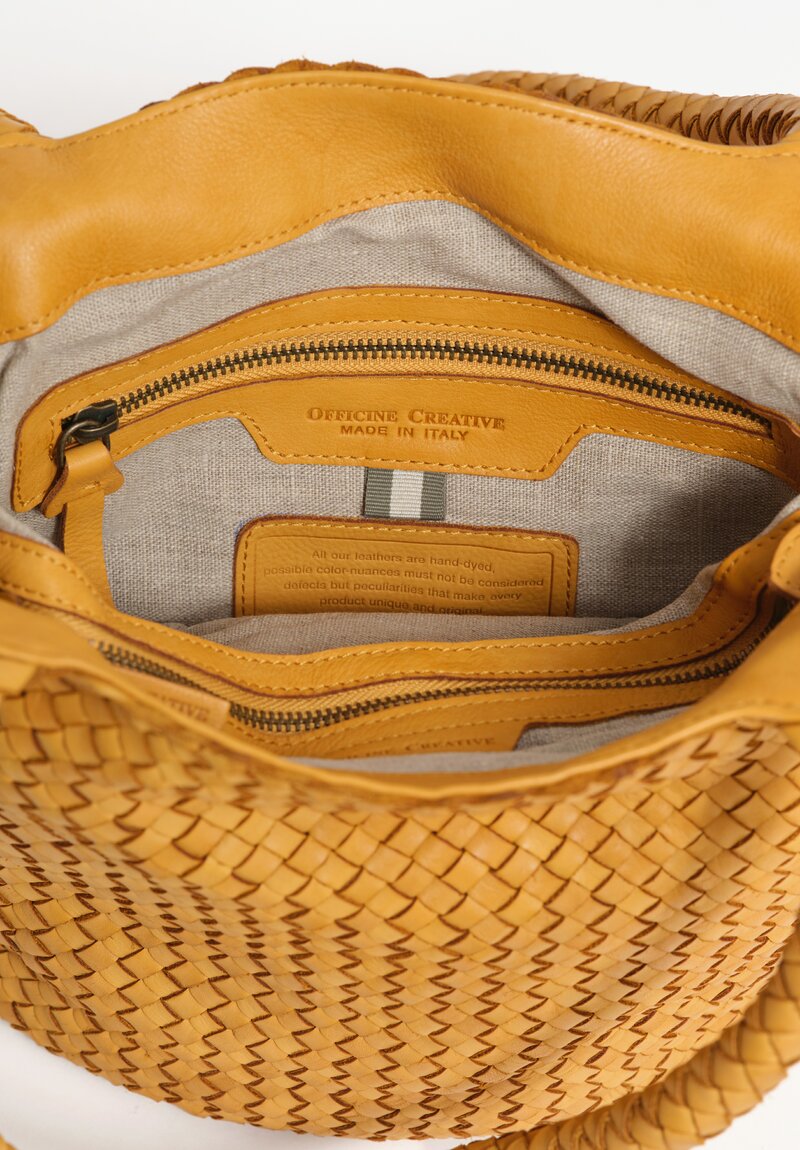 Officine Creative Woven Leather Small Trapezoid Shoulder Bag in Mustard Yellow