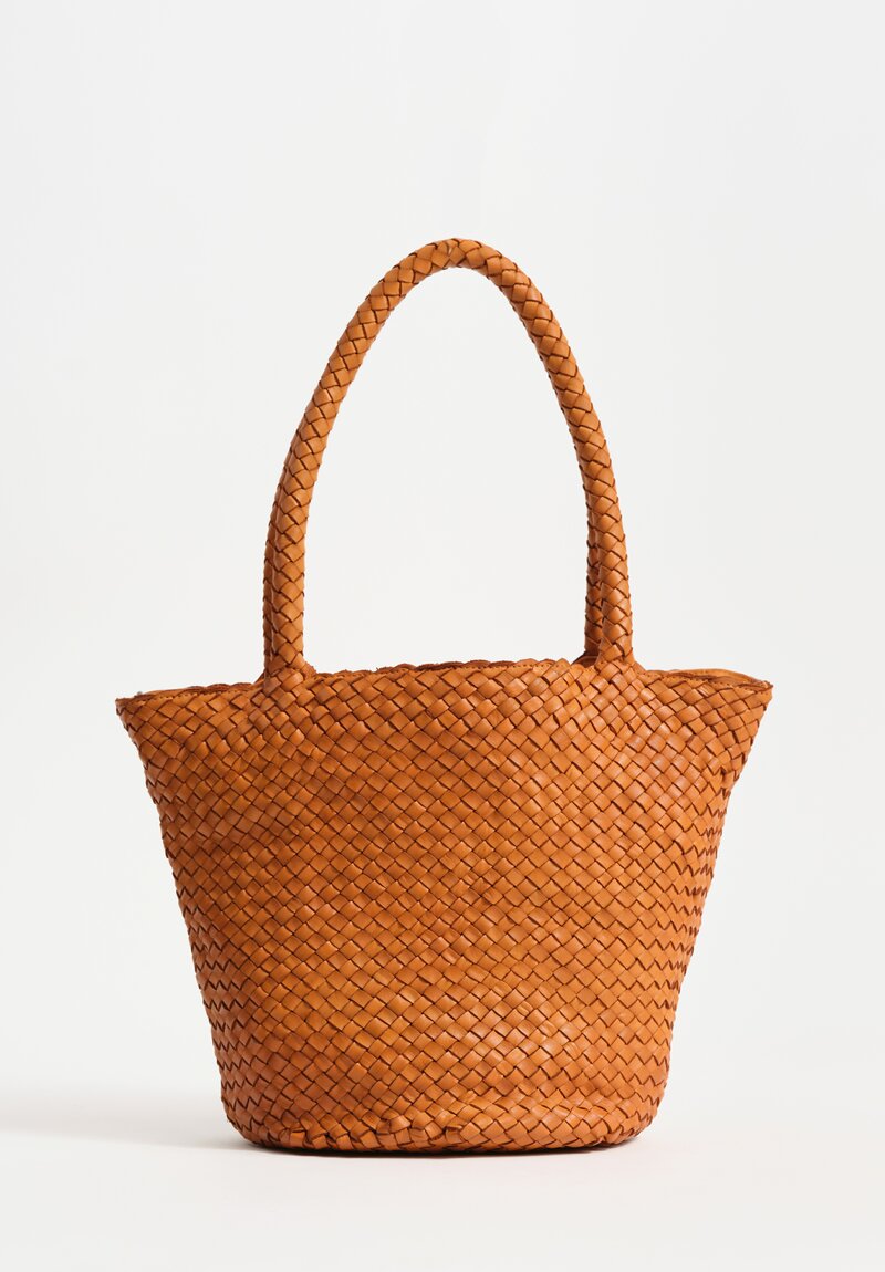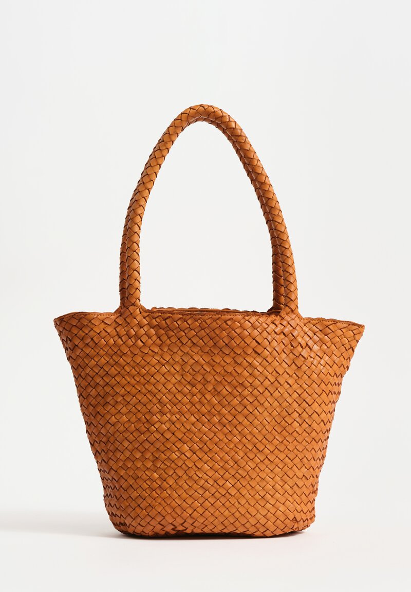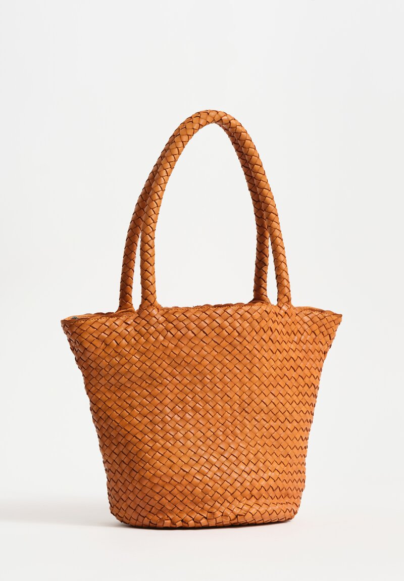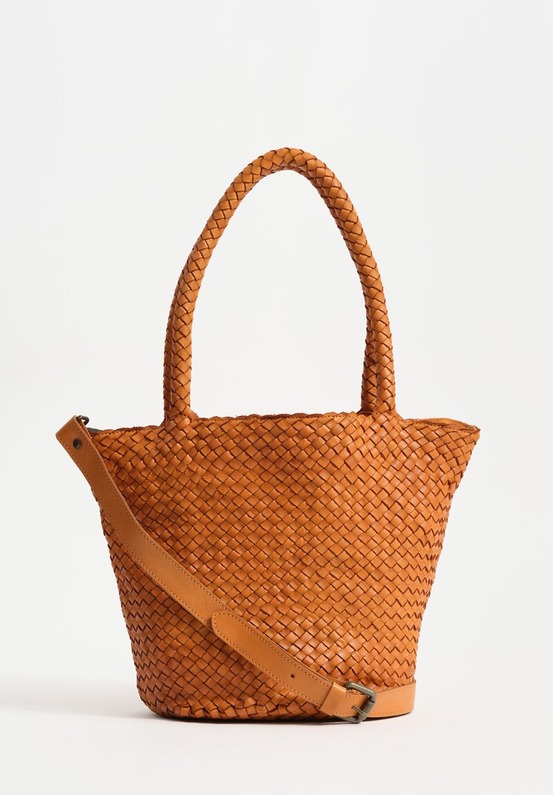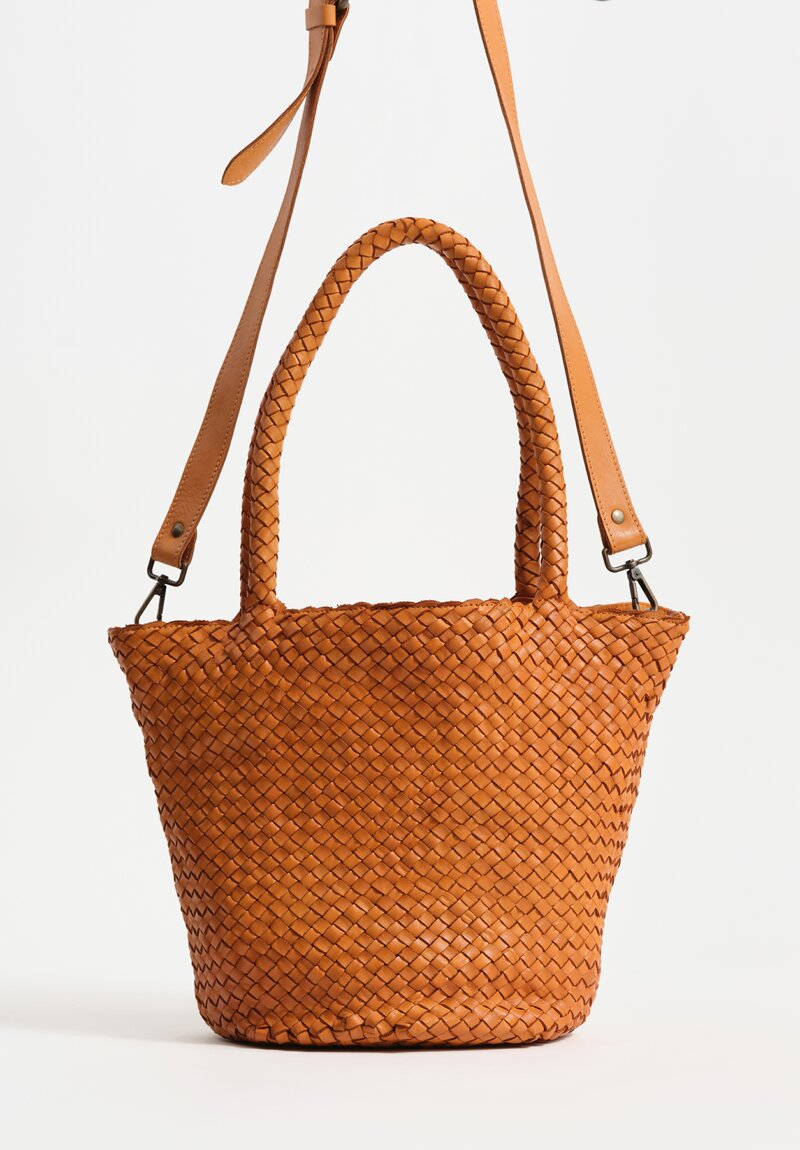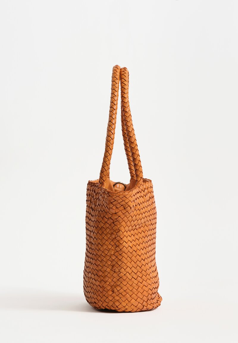 Woven Leather Small Trapezoid Shoulder Bag in Russet Orange