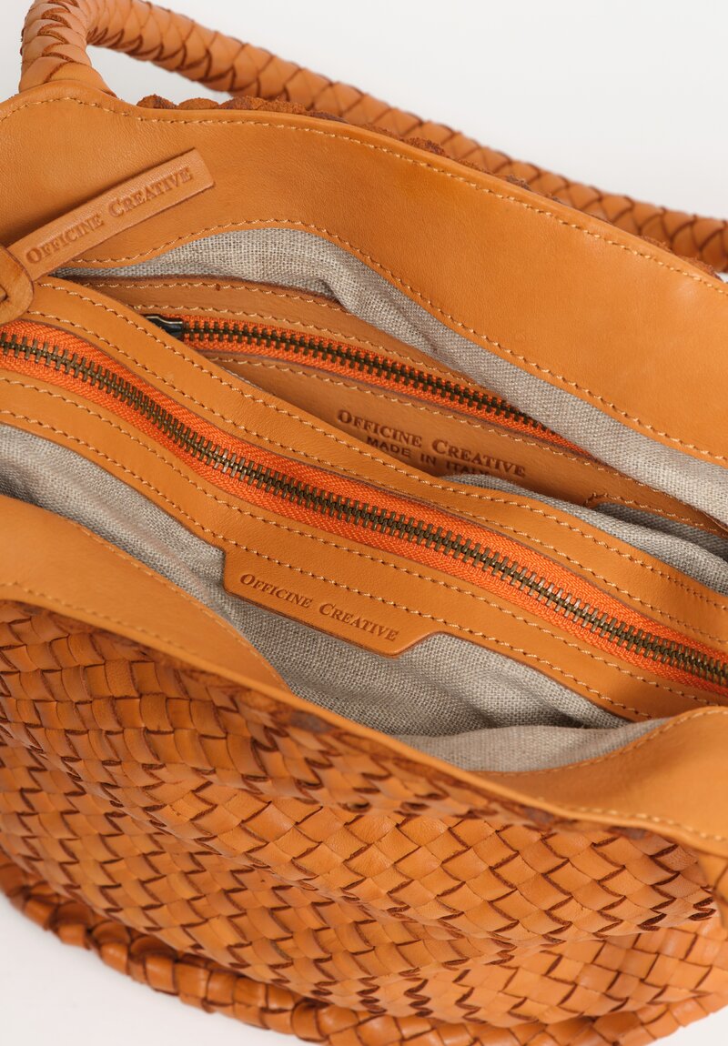 Officine Creative Woven Leather Small Trapezoid Shoulder Bag in Russet Orange