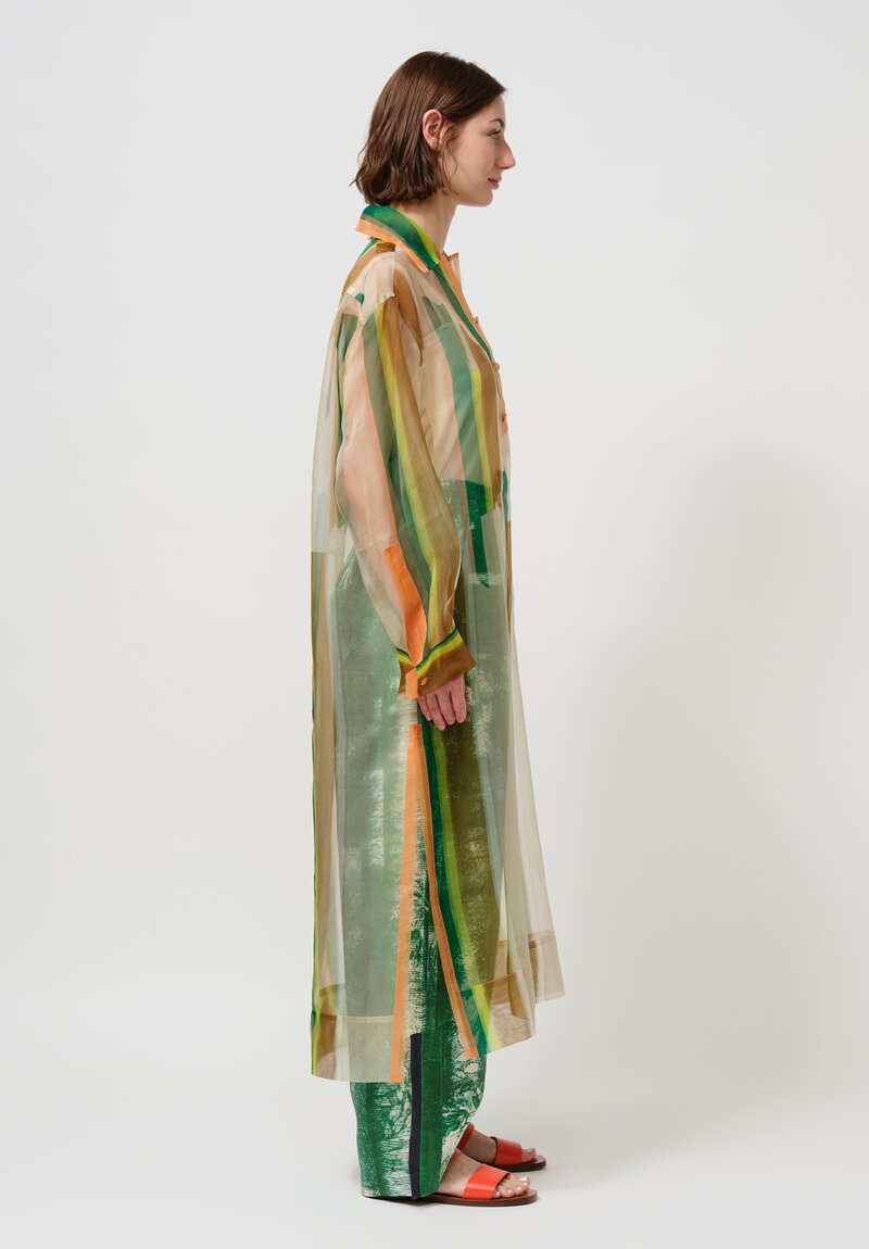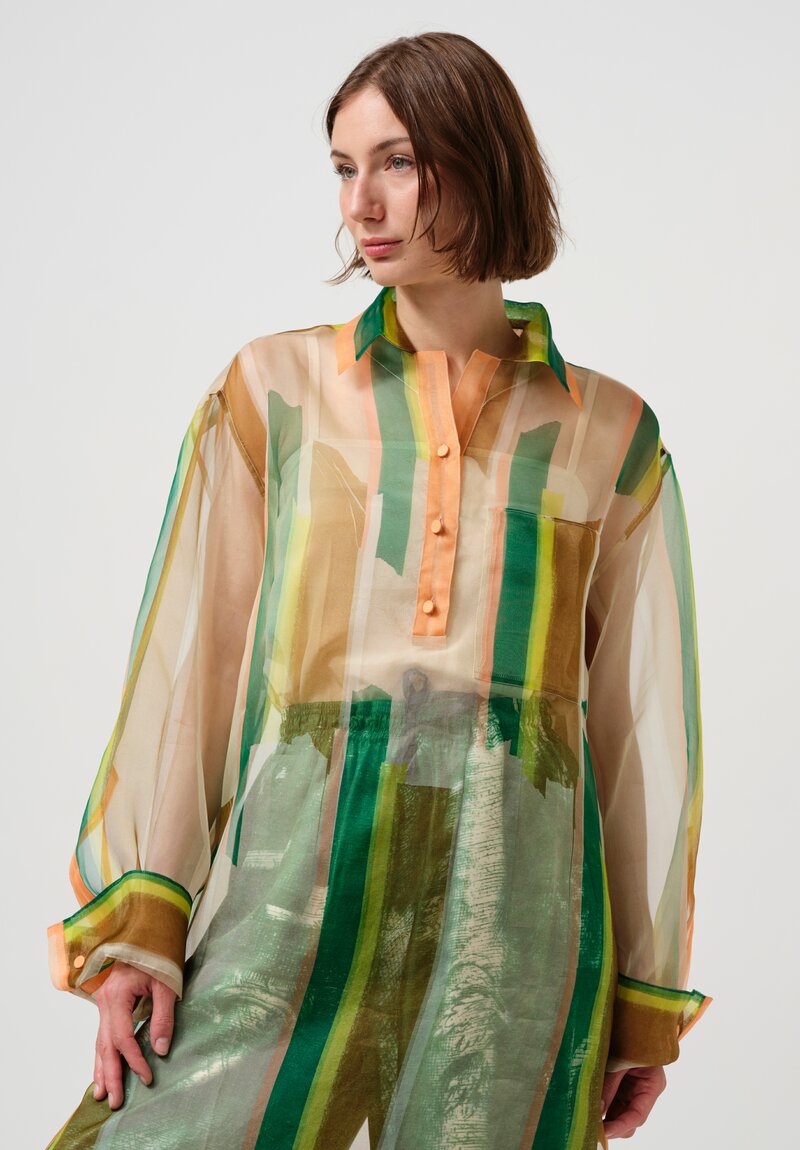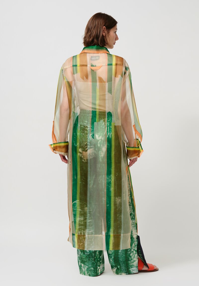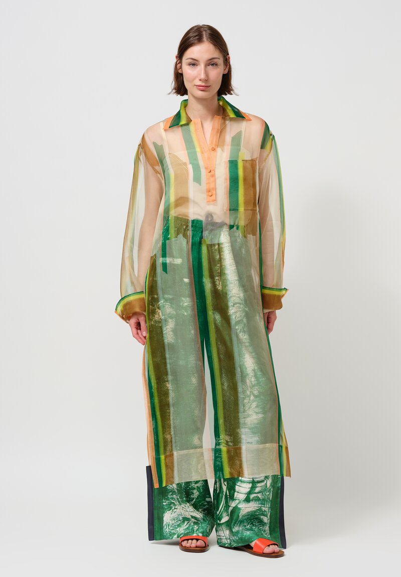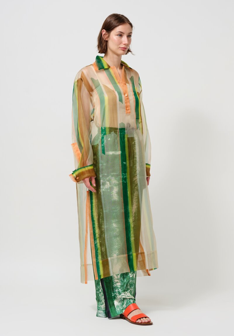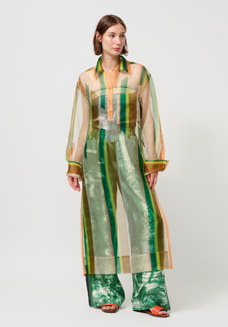 Silk Organza Giovanni Long Shirt in Green & Orange