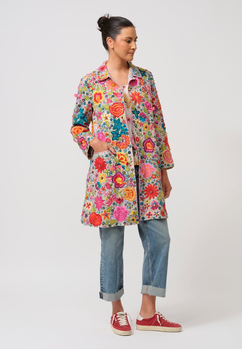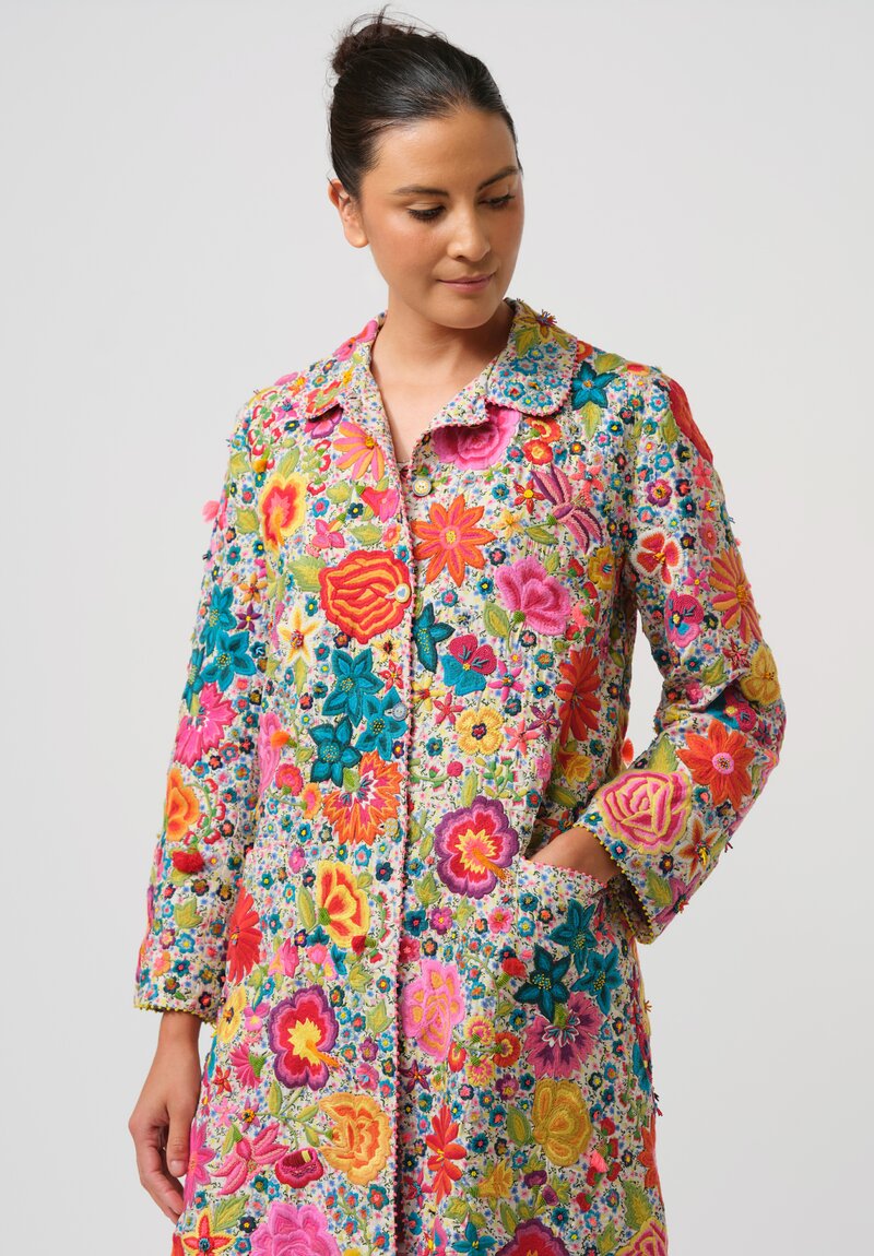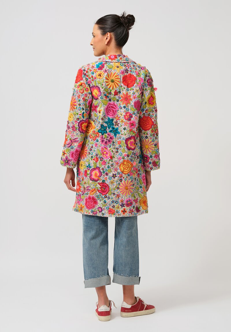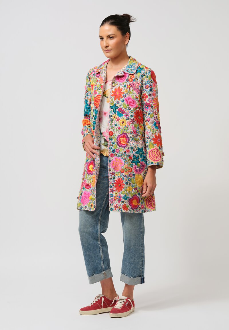 Archival Cotton & Silk Embroidered Garden Coat c. 2015 in Pink & Blue Floral
