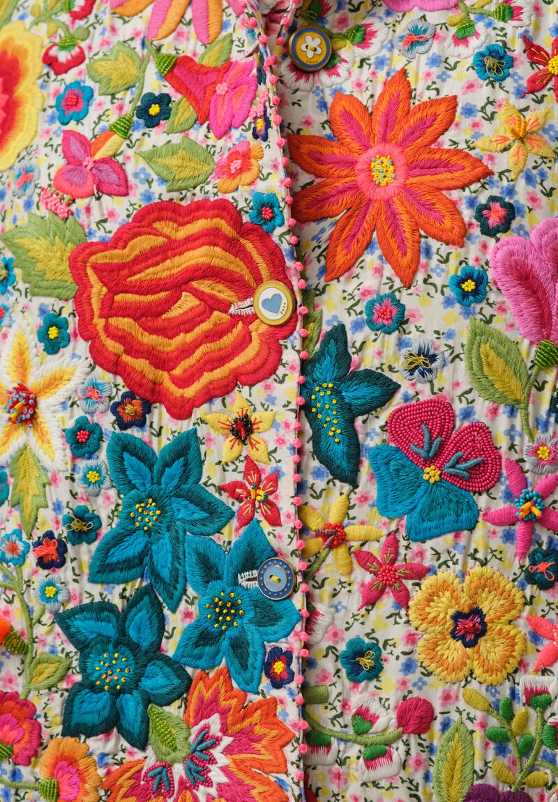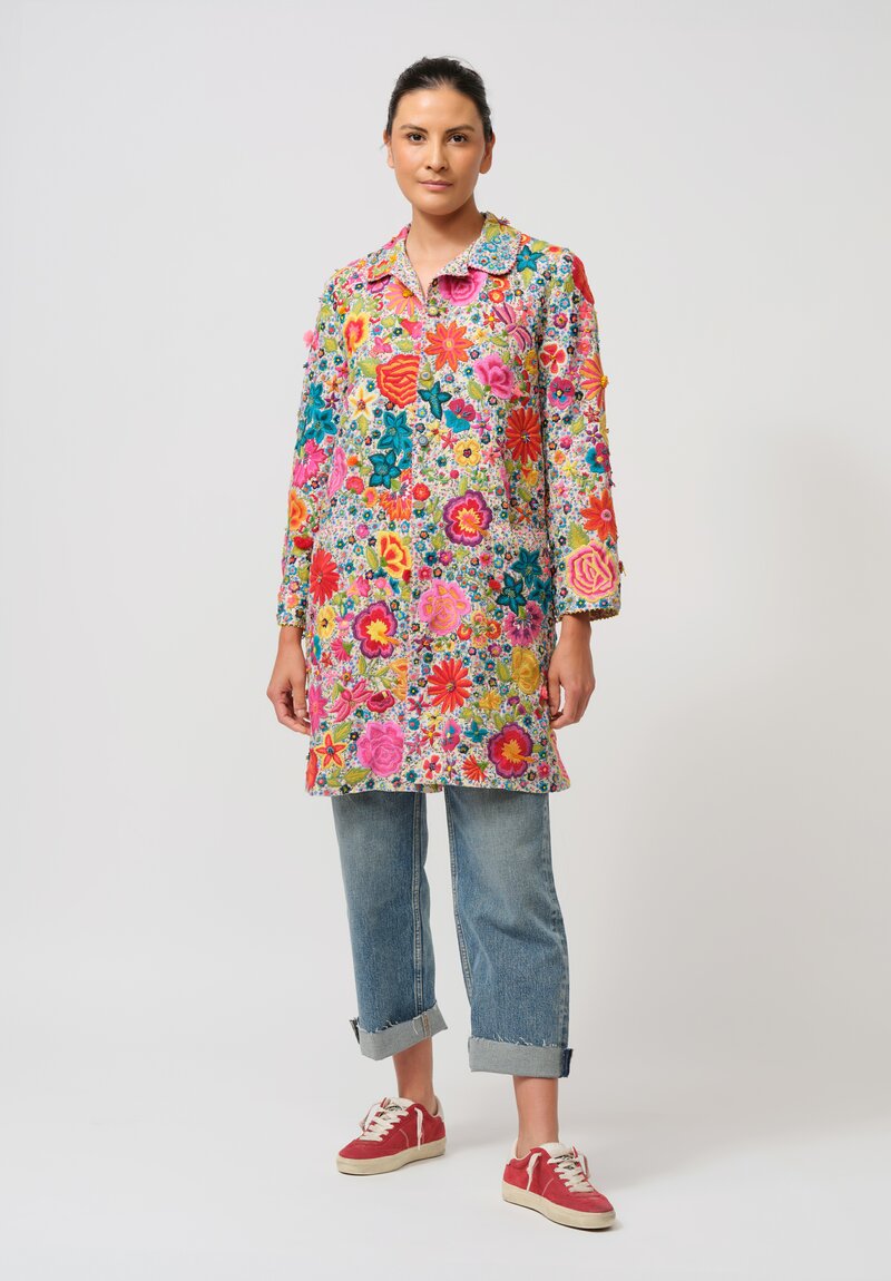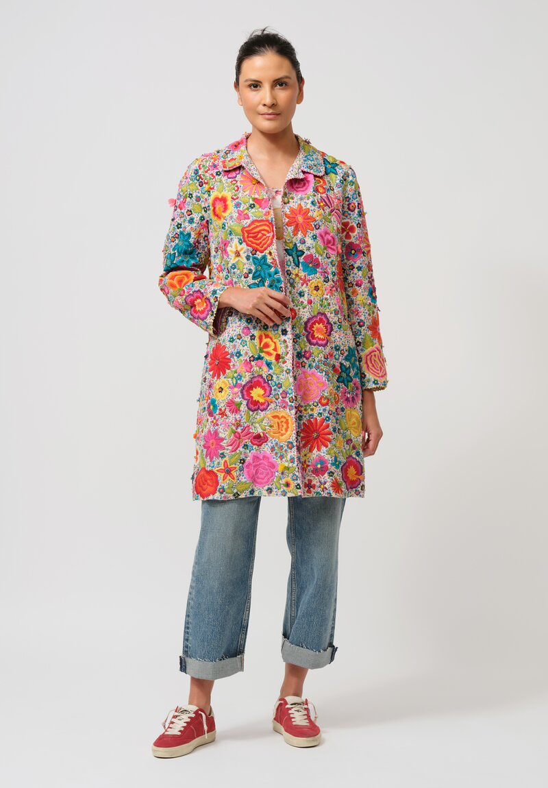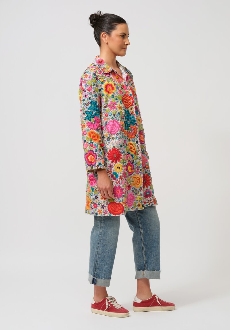 Archival Cotton & Silk Embroidered Garden Coat c. 2015 in Pink & Blue Floral