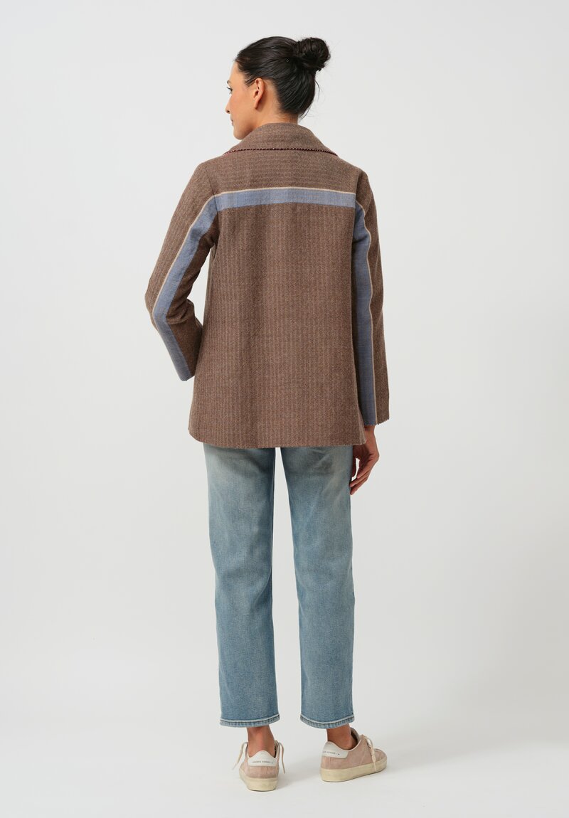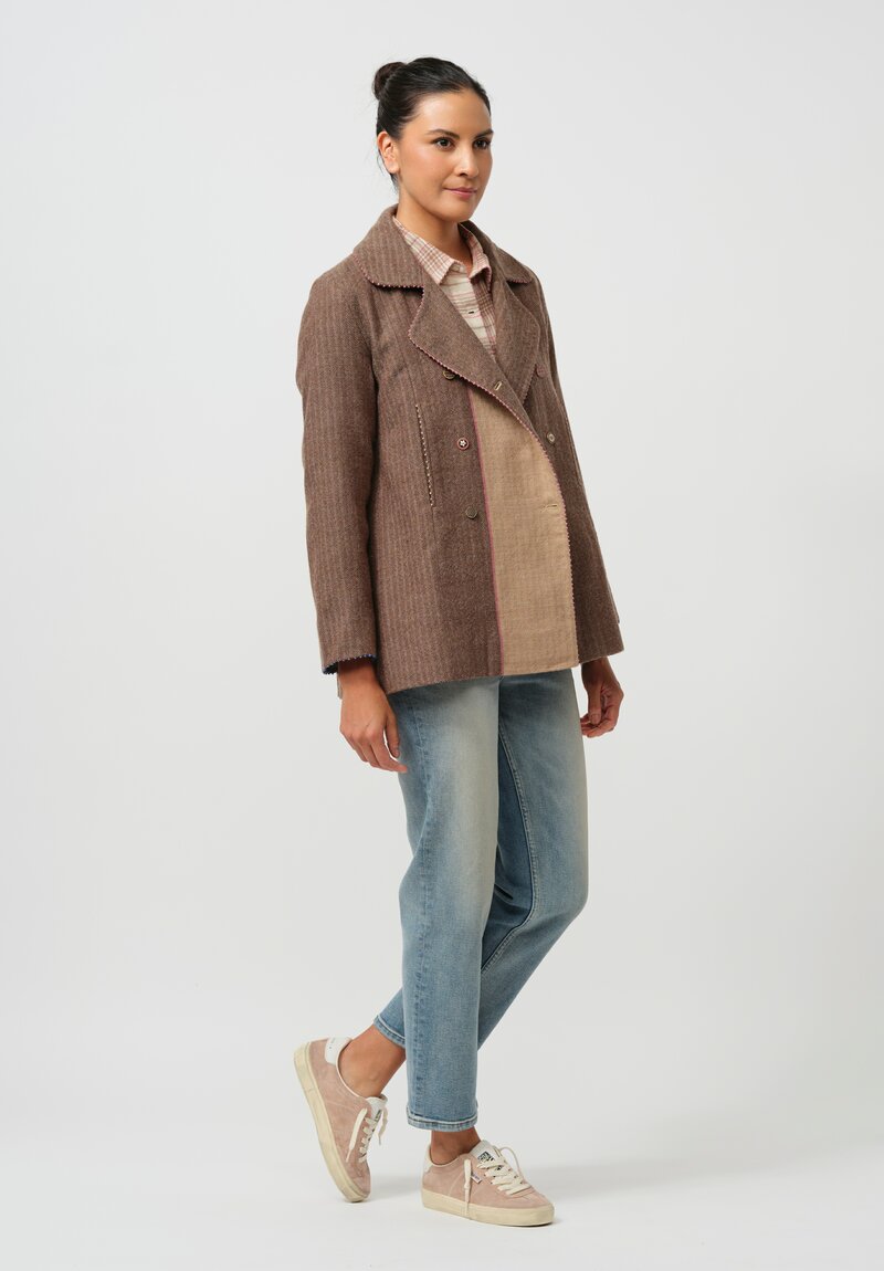 Péro Silk Lined Peacoat in Brown & Beige Herringbone