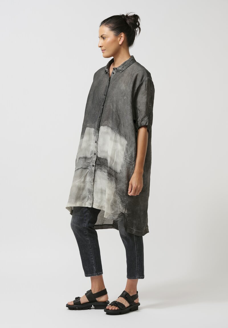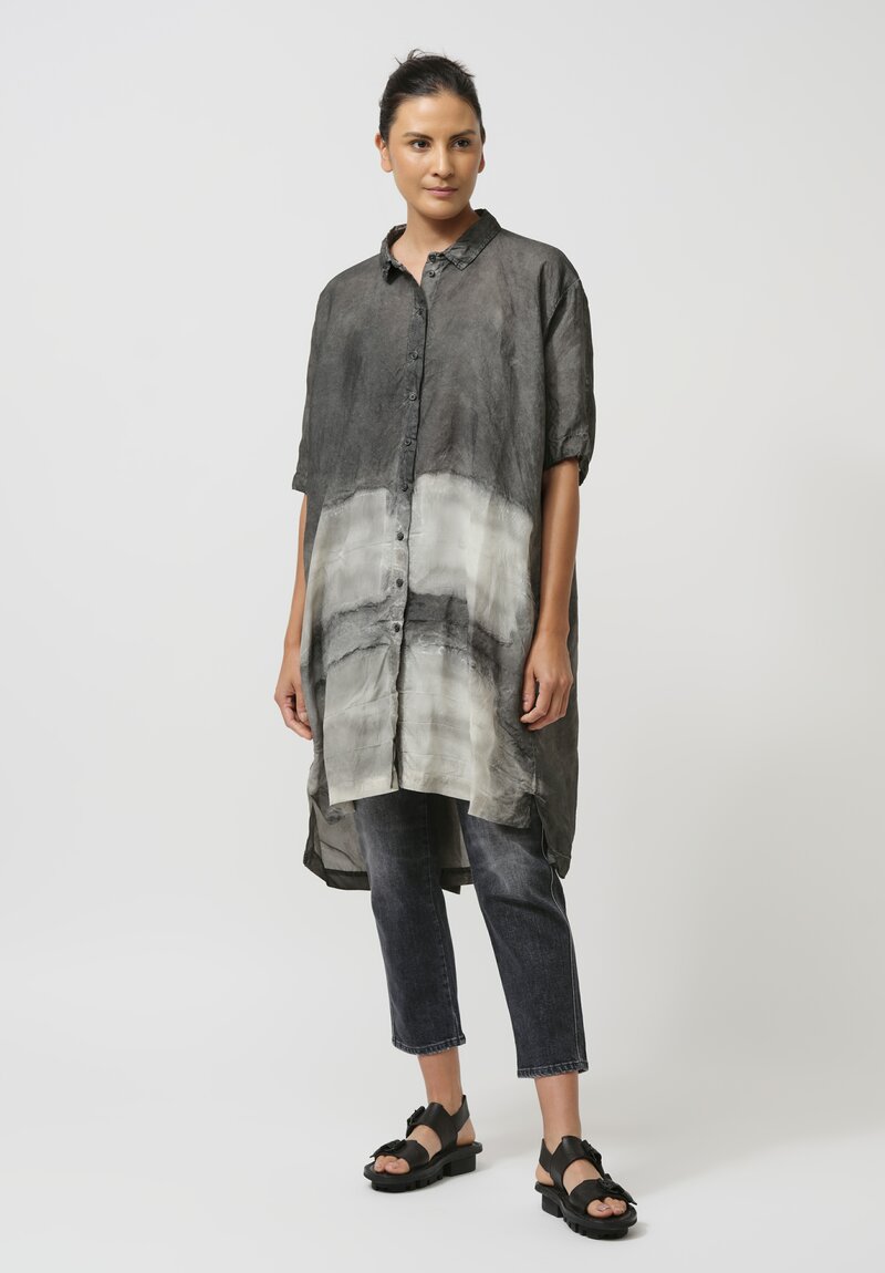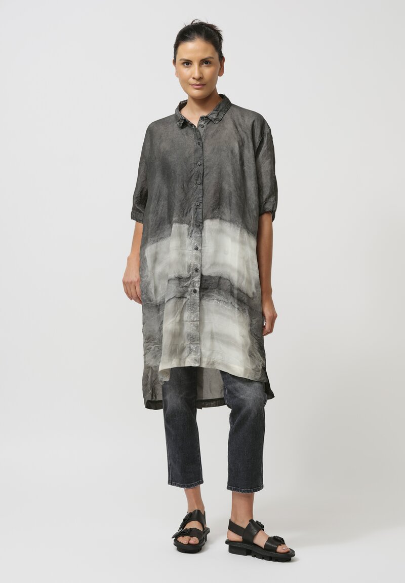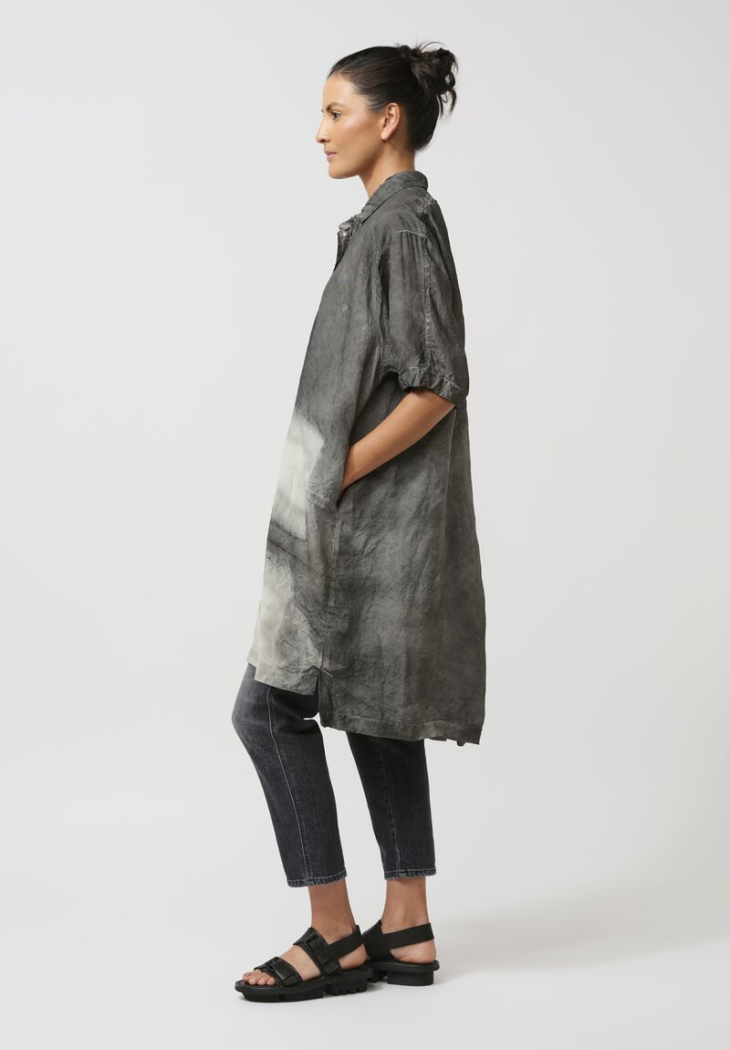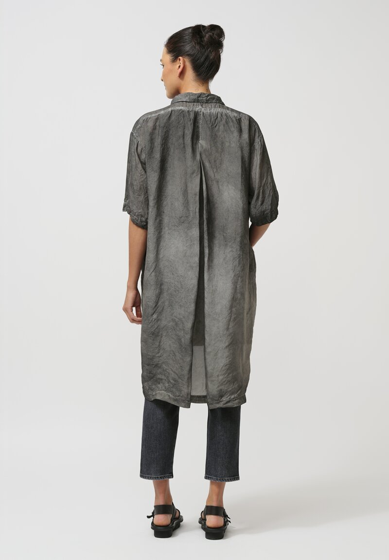 Rundholz Cupro Silver Sparkle Dusted Shirt Dress in Asteroid Gray