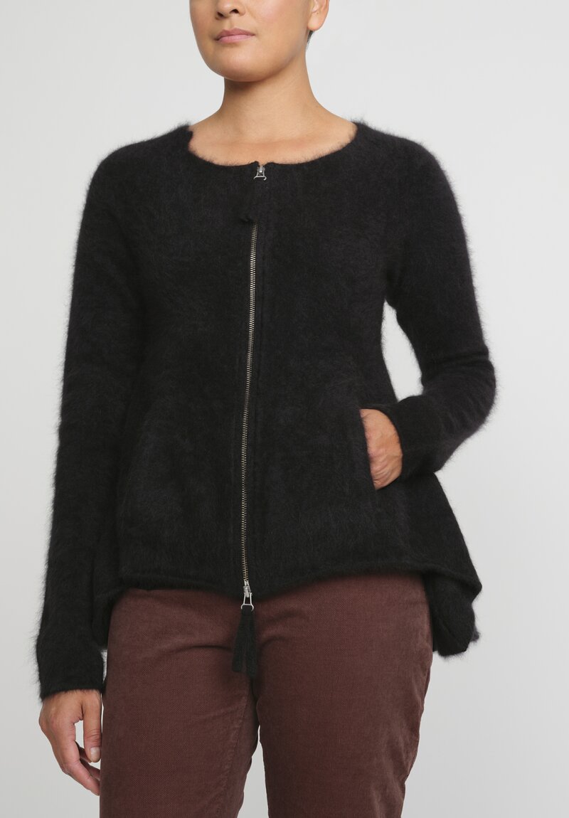 Rundholz Raccoon Hair Flared Zip Cardigan in Black