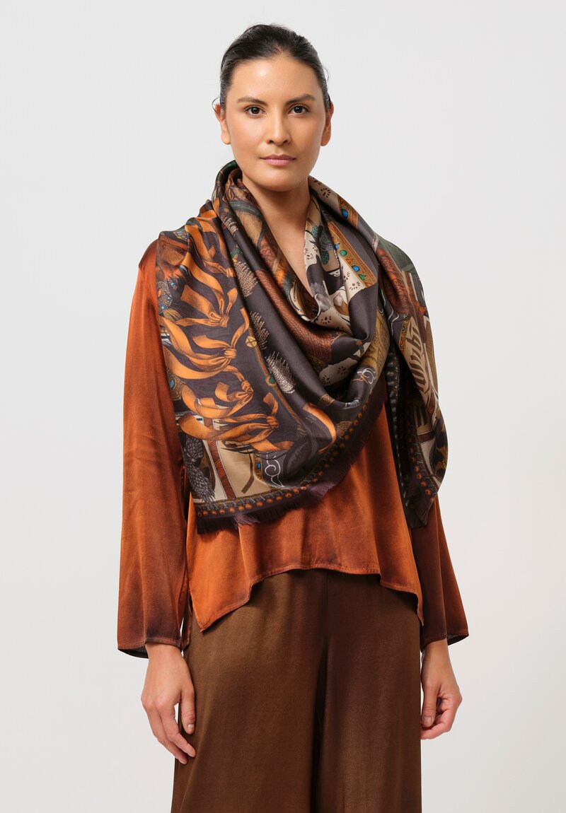 Sabina Savage Silk Twill The Wind Horse Square Scarf in Coal & Cloud Purple