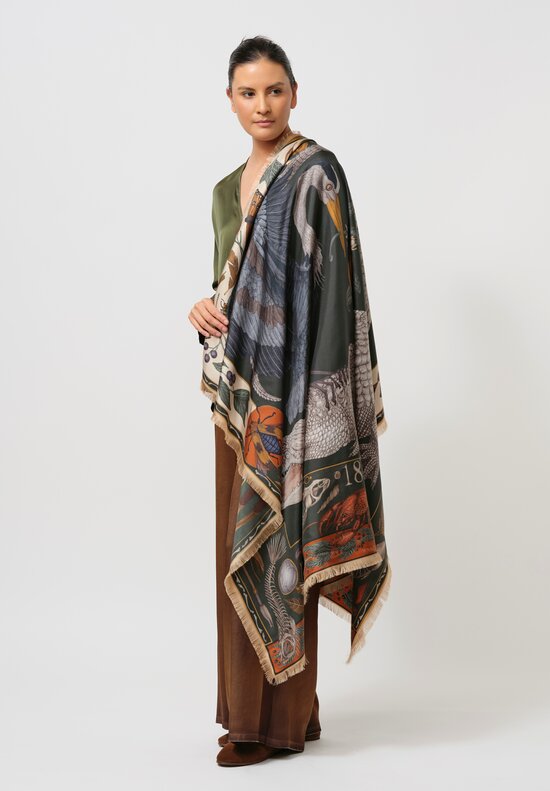 Every Sabina Savage design is hand illustrated, telling the story of the collection through the composition and details. The scarves are drawn in full, and the four corners of each scarf offer different elements, ensuring the wearer will display a unique feature however the scarf is folded.