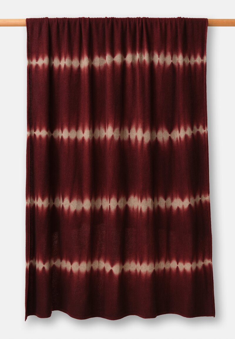 Cashmere Knit Nuisuji Shibori Throw in Bordeaux Red & Sand