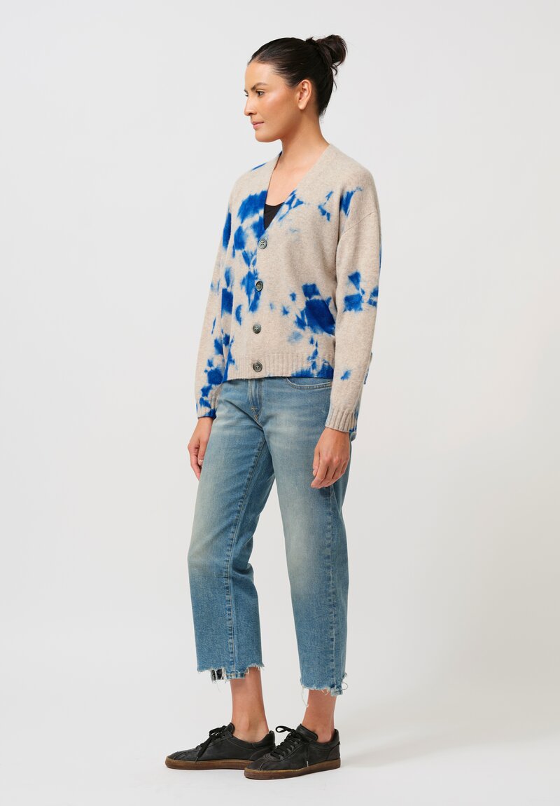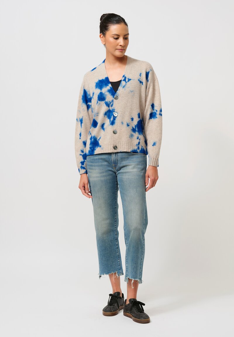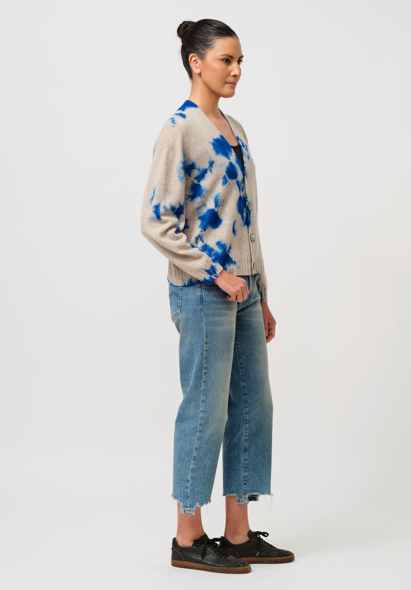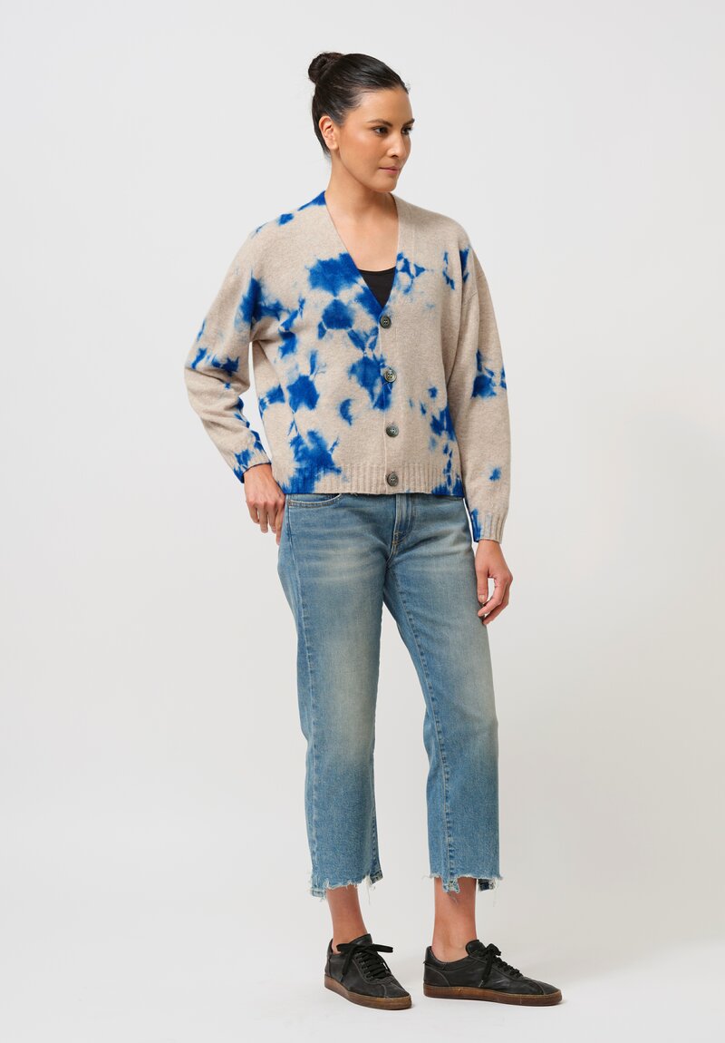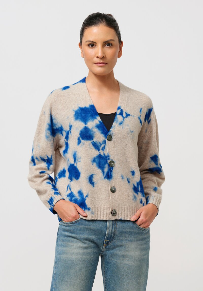 Cashmere Madara Shibori Cardigan in Royal Blue & Sand