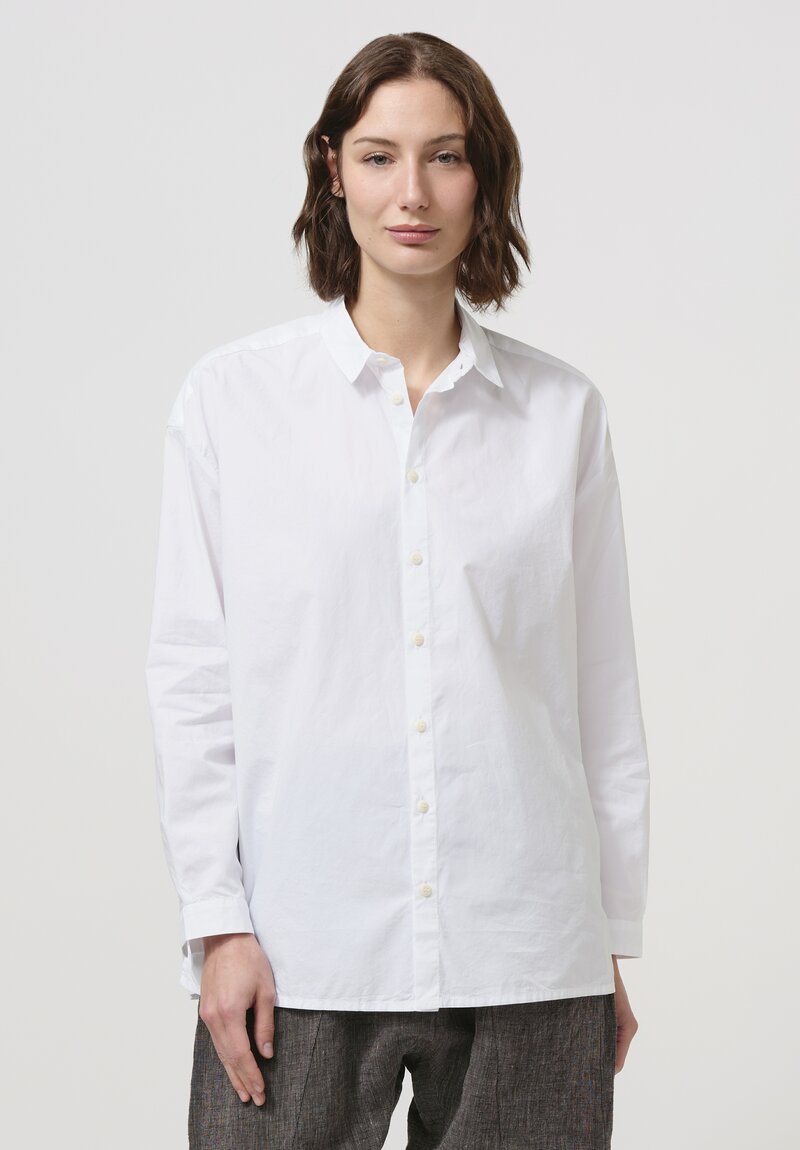 Cotton Poplin ''Draughtsman'' Shirt in Chalk White