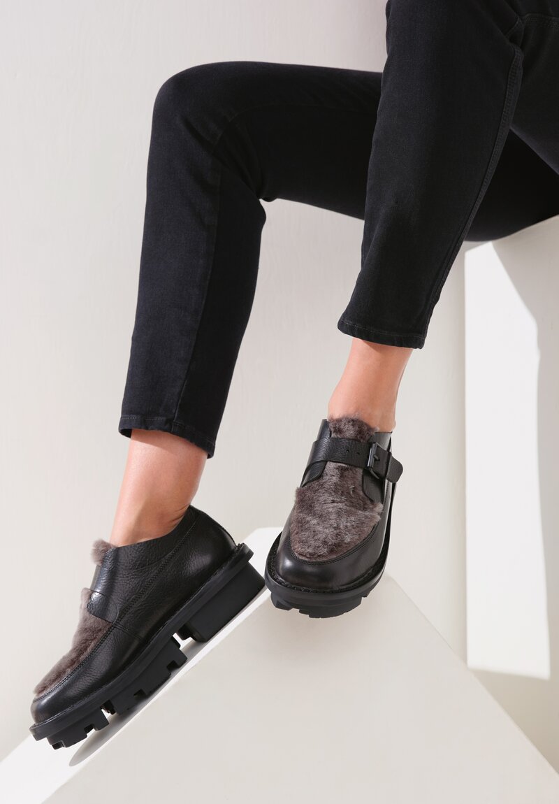 Trippen Sheepskin-Lined Transform Shoe in Steel & Black