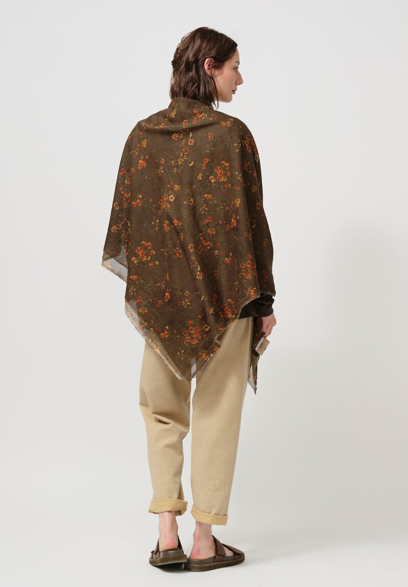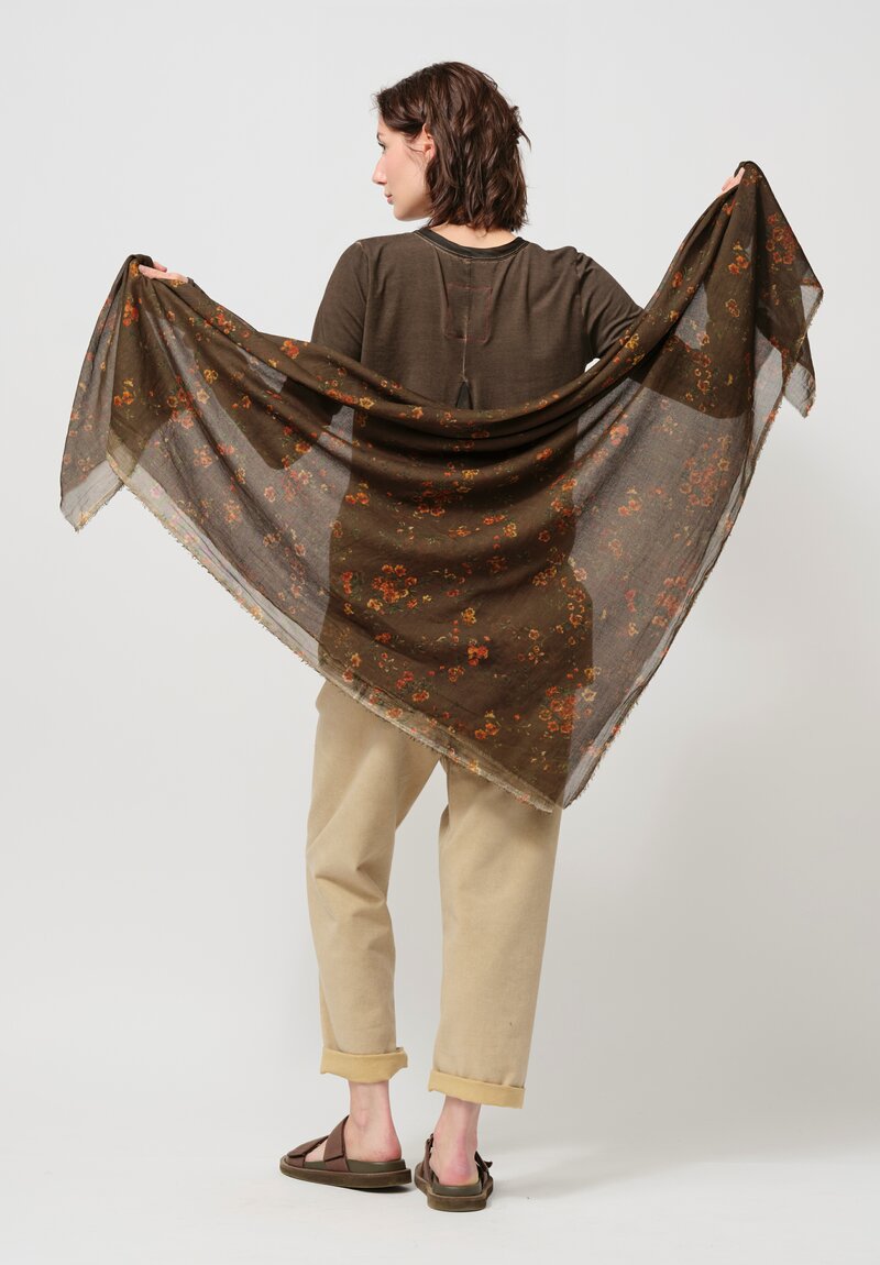 Uma Wang Cotton Floral Scarf in Hazel Brown
