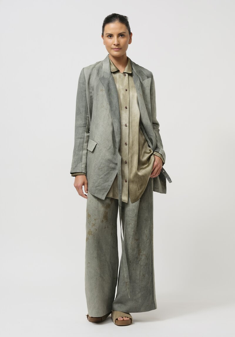 • Uma Wang Linen & Cotton Wide Leg Paella Pants in Venice Blue
