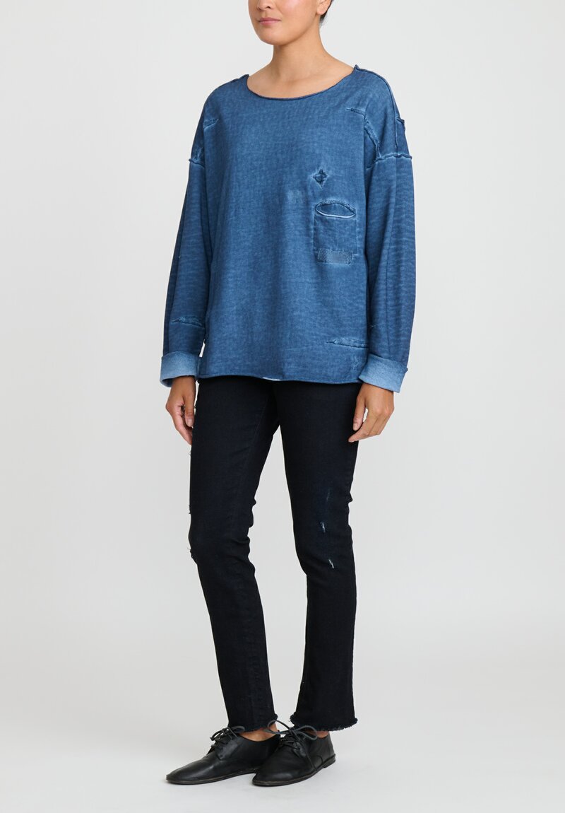 Umit Unal Cotton Patch Pocket Pullover in Dark Navy Blue