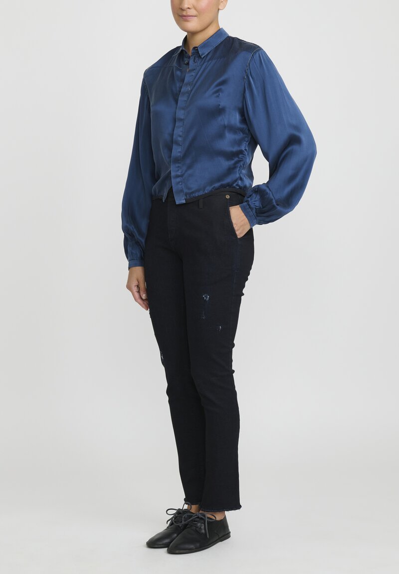 Umit Unal explores big concepts while remaining rooted in a casual style that is still intellectual. Natural fabrics are dyed in his signature monochromatic “non-color” palette, while handmade details abound—such as the hand stitching around the pockets and lapels and the mindful crumpling that is masterfully created for texture.