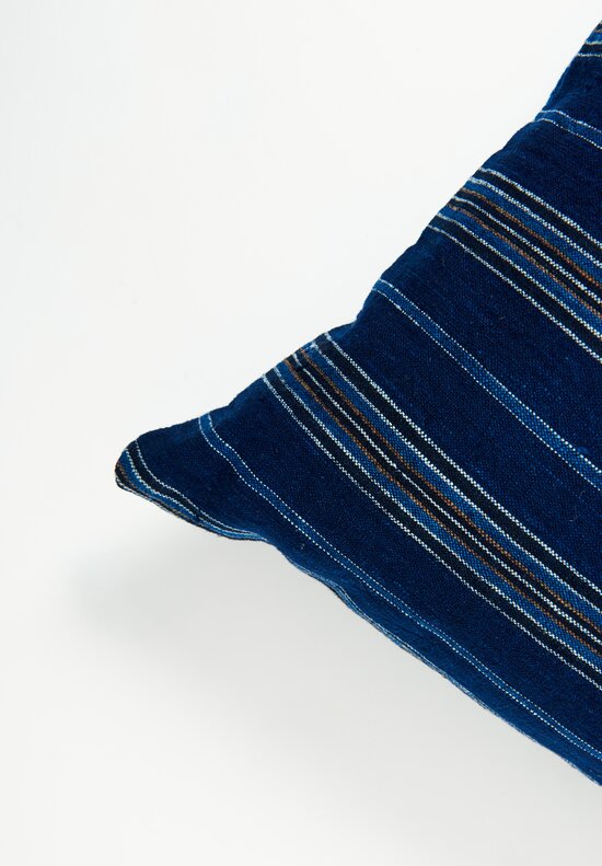 Vintage Han Handwoven Cotton Horizontal Stripe Pillow in Indigo Blue I