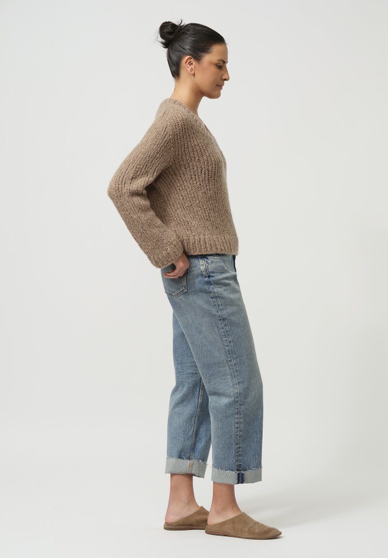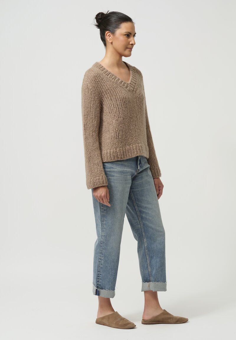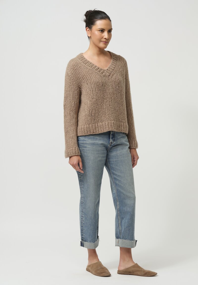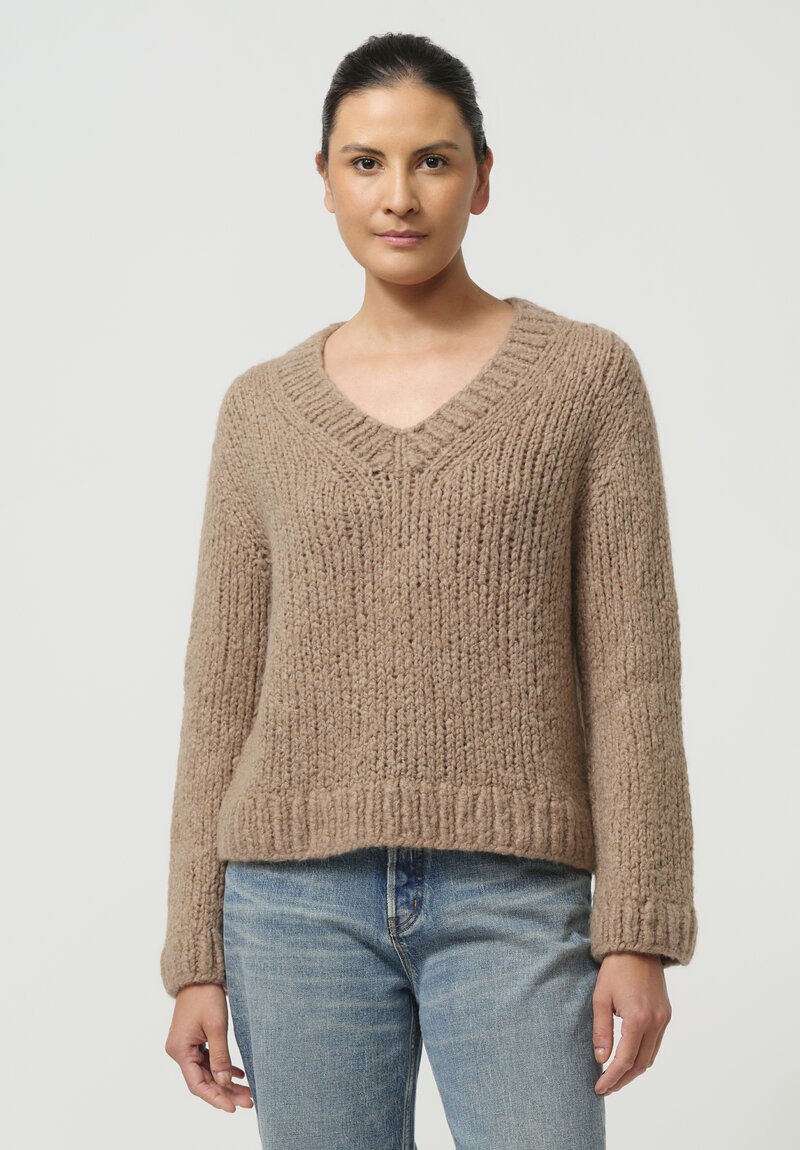Wommelsdorff Hand-Knit Cashmere Silk Zazie Sweater in Toffee Brown