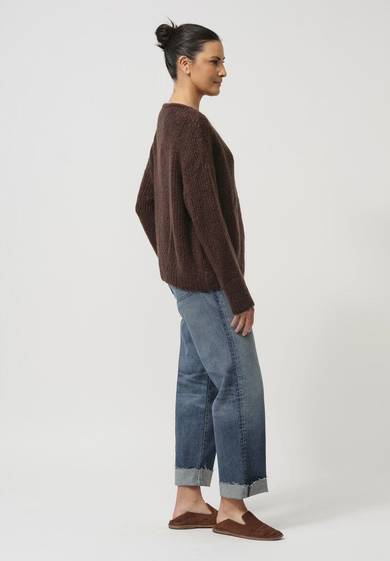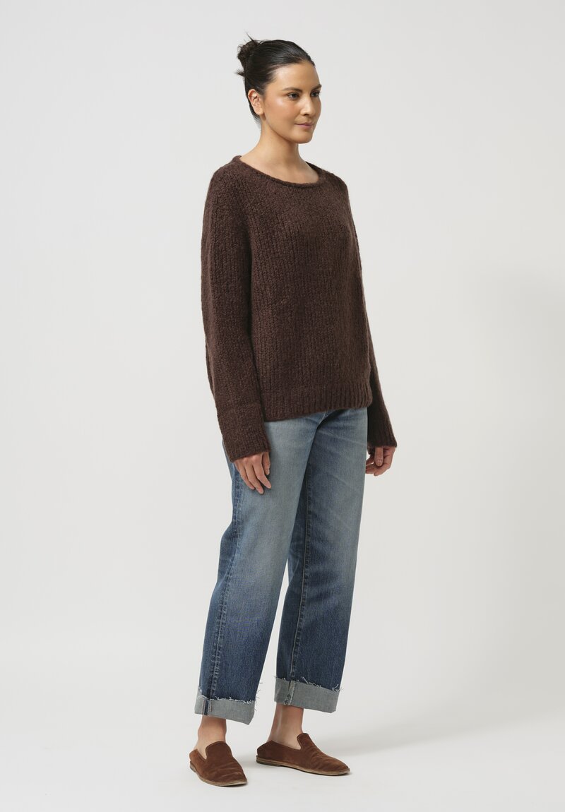 Hand-Knit Faye Cashmere & Silk Sweater in Umbra Brown