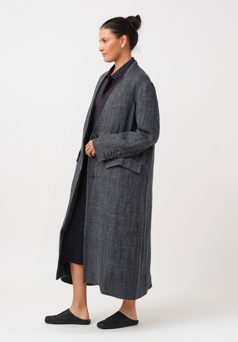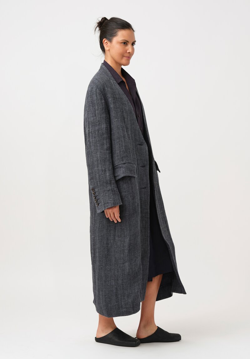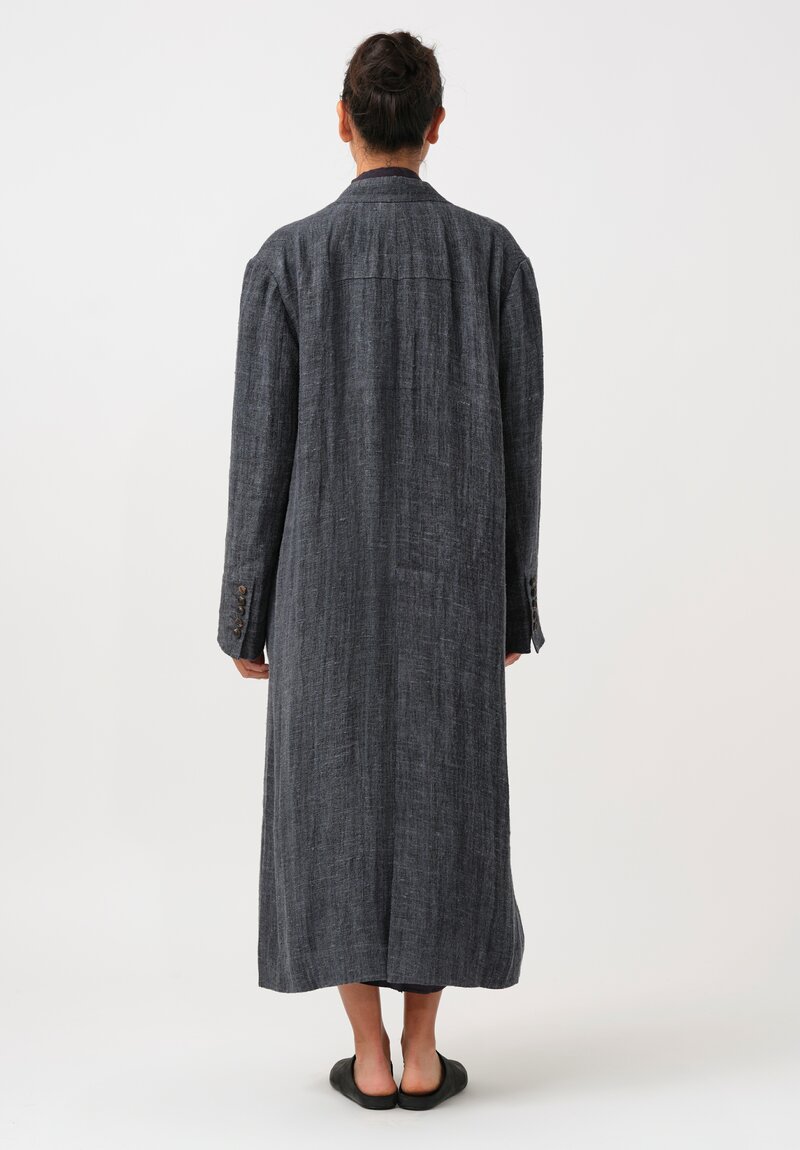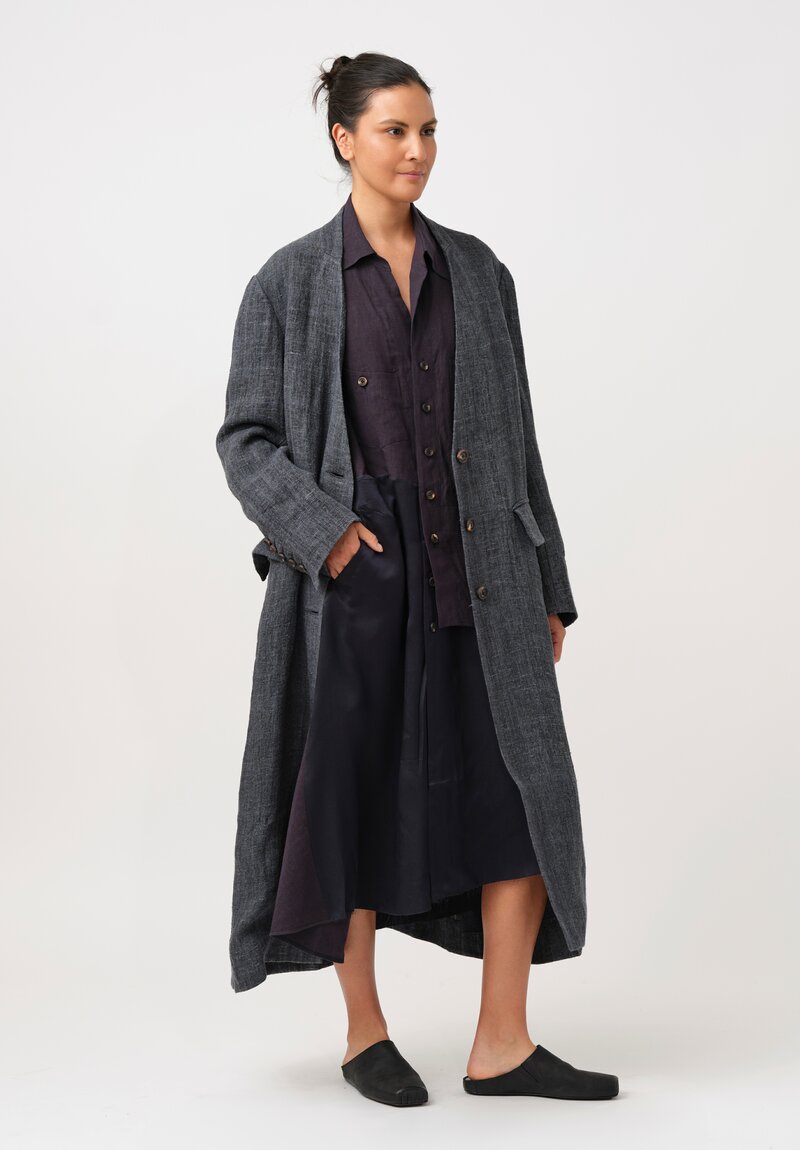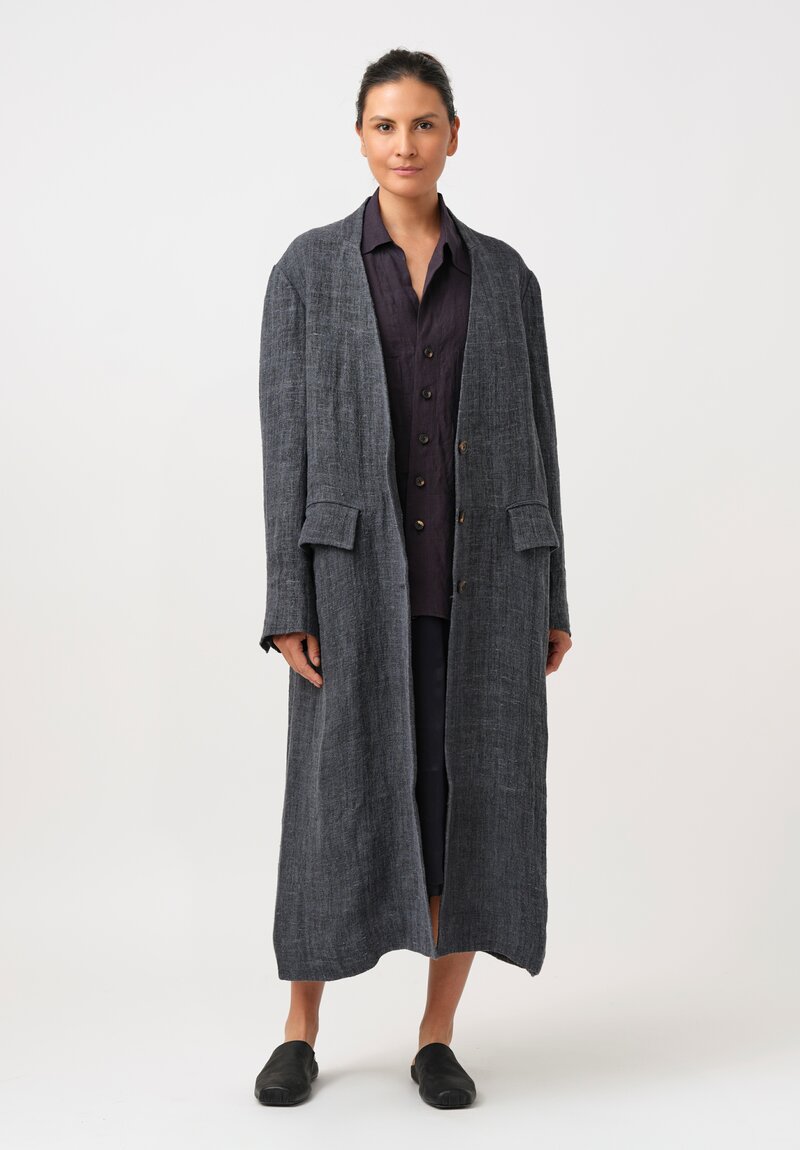 Ziggy Chen Linen Deep V-Neck Duster Coat in Storm Grey