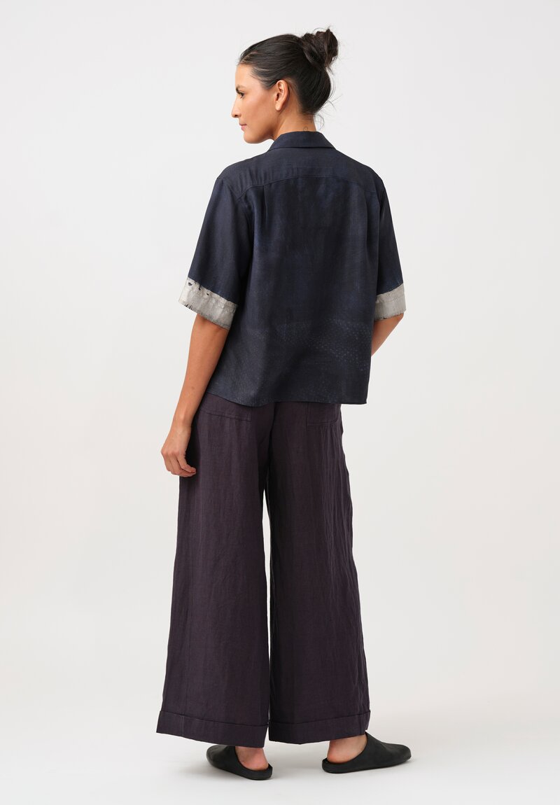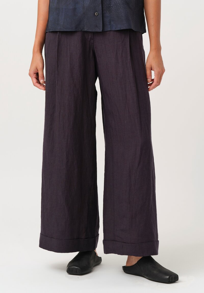 Ziggy Chen Linen Pants in Navy Blue Plaid