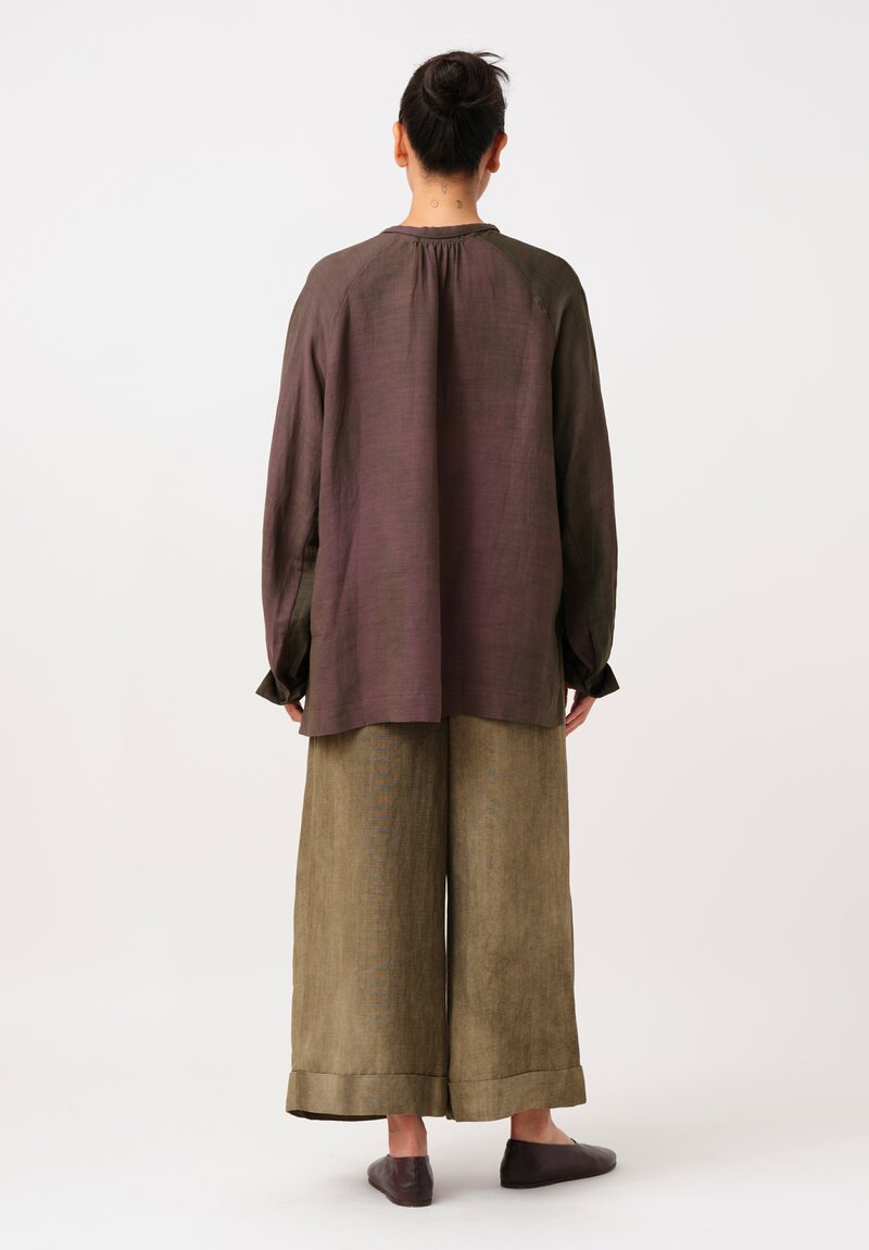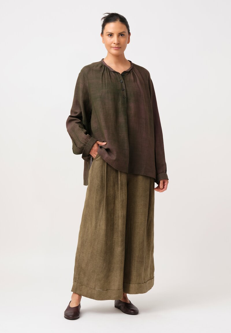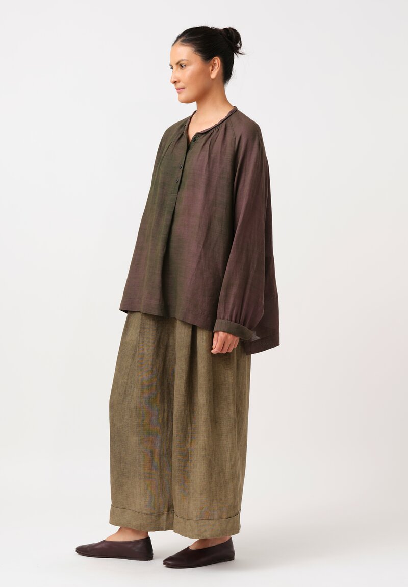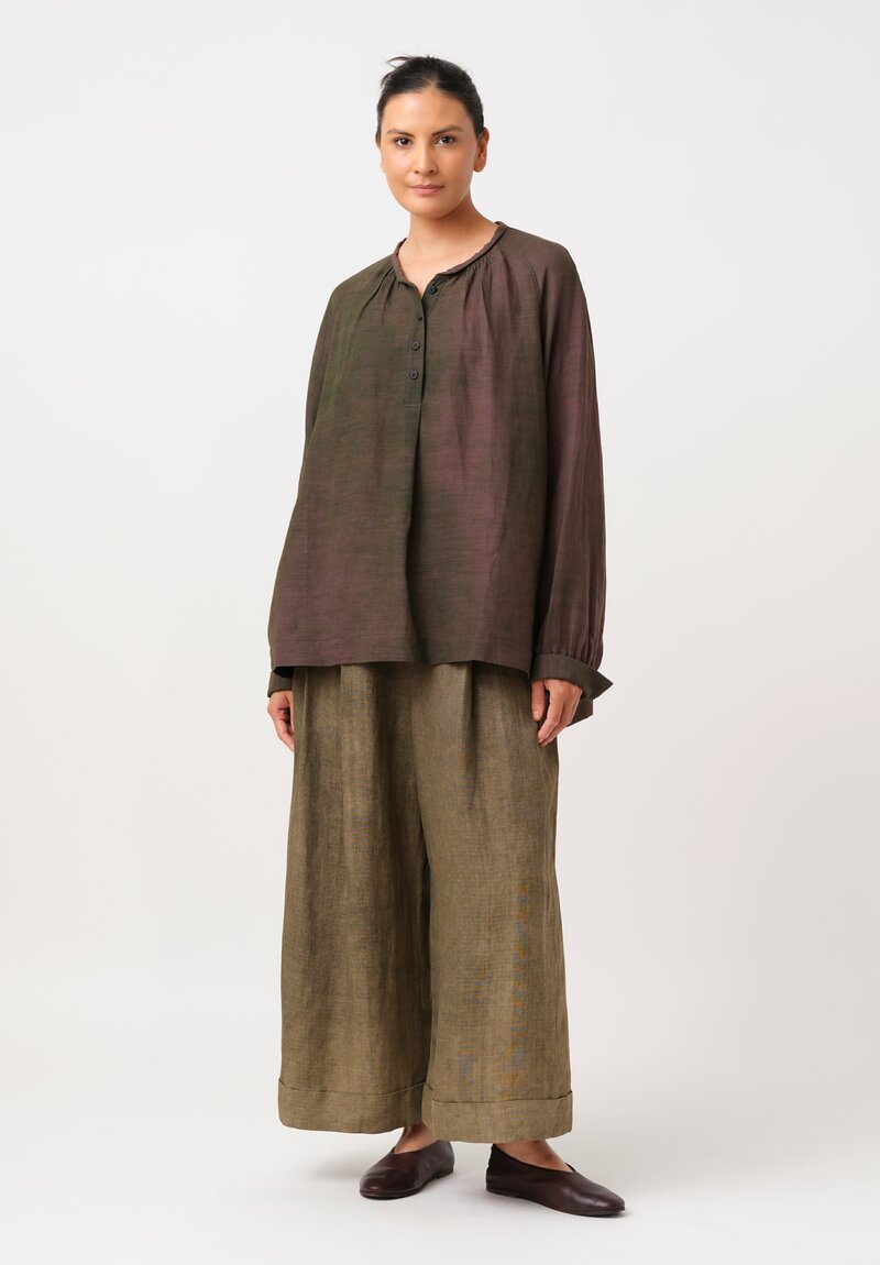 • Ziggy Chen Cotton Half-Placket Top in Kombu Green & Purple