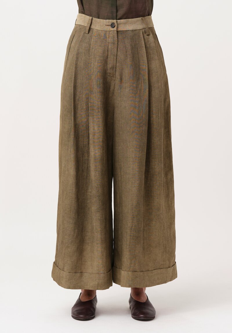 Ziggy Chen Pleated Wide Leg Pants in Olive Brown